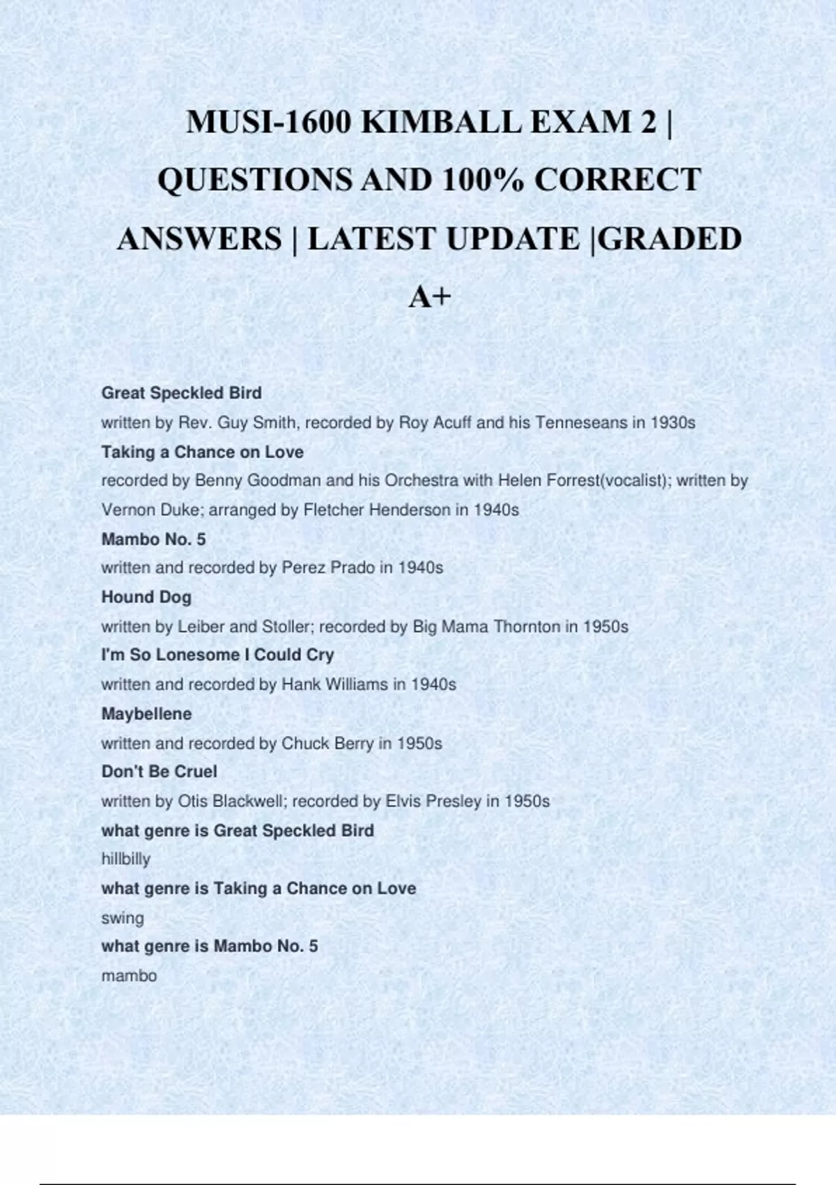MUSI-1600 KIMBALL EXAM 2 | QUESTIONS AND 100% CORRECT ANSWERS | LATEST UPDATE |GRADED A+