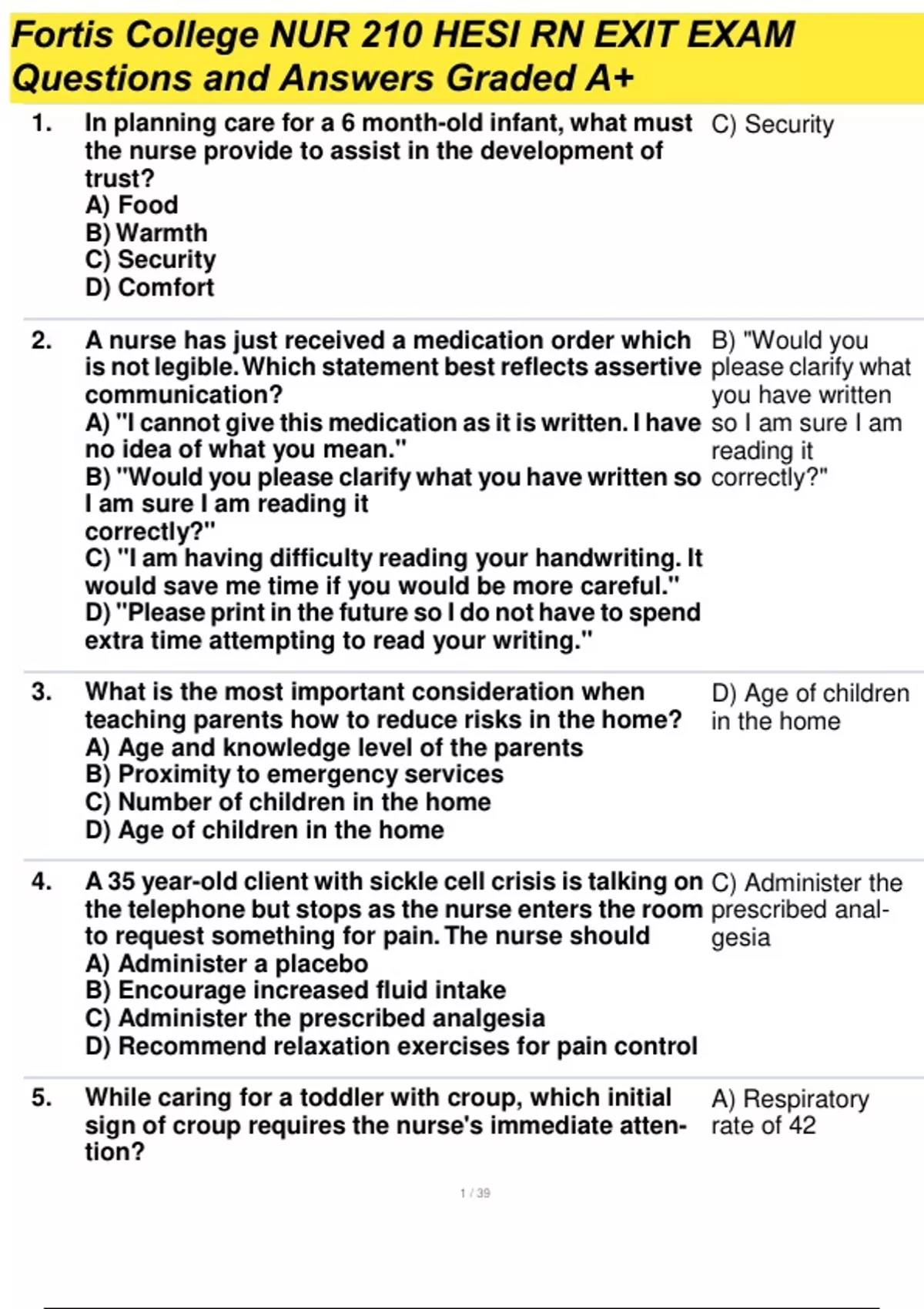 fortis college nur 210 hesi rn exit exam 150actual