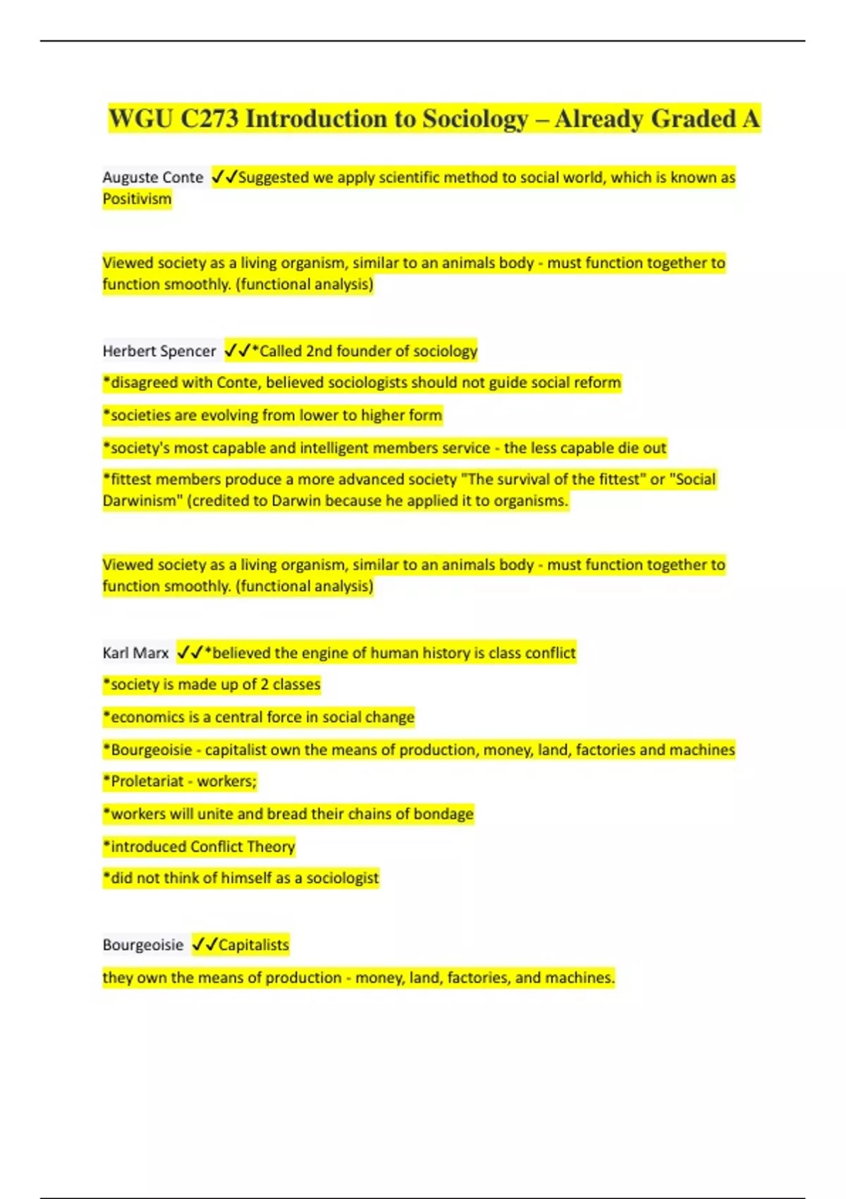 WGU C273 Introduction to Sociology – Questions with Correct Answers Already Graded A+