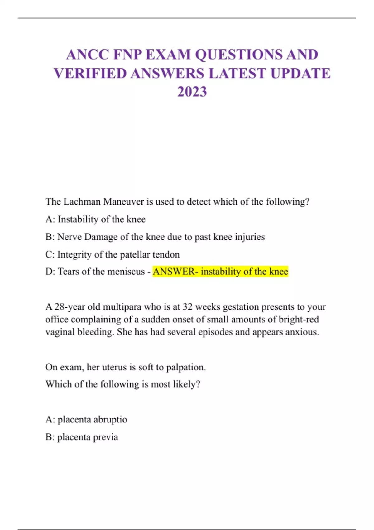 ANCC FNP EXAM QUESTIONS AND VERIFIED ANSWERS LATEST UPDATE 2023ANCC FNP EXAM QUESTIONS AND VERIFIED ANSWERS LATEST UPDATE 2023ANCC FNP EXAM QUESTIONS AND VERIFIED ANSWERS LATEST UPDATE 2023ANCC FNP EXAM QUESTIONS AND VERIFIED ANSWERS LATEST UPDATE 2023ANCC FNP EXAM QUESTIONS AND VERIFIED ANSWERS LATEST UPDATE 2023