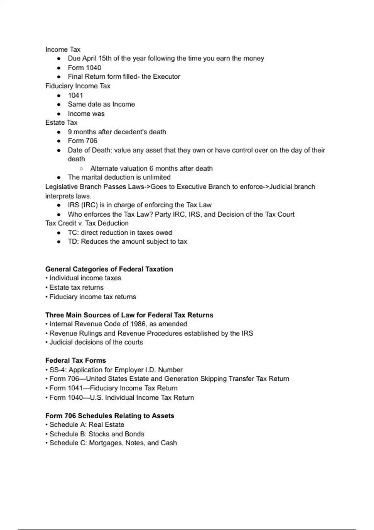 Lecture notes on estate tax for different properties, federal taxes in general, and federal agencies involved with the enforcement of the tax codes.