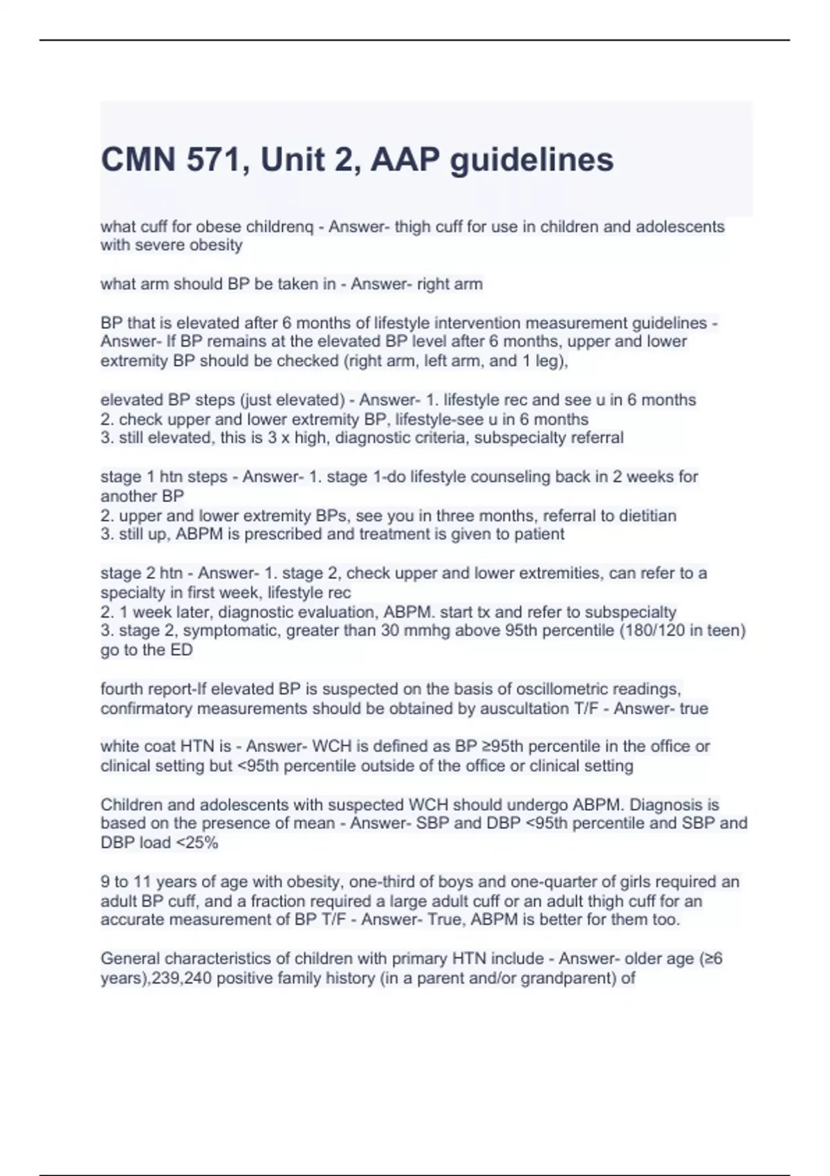 CMN 571, Unit 2, AAP guidelines Exam Questions and Answers