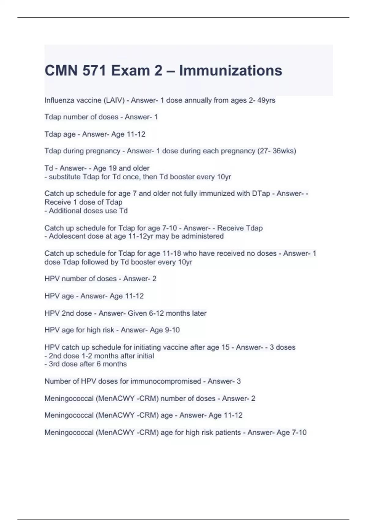 CMN 571 Exam 2 - Immunizations Questions and Answers