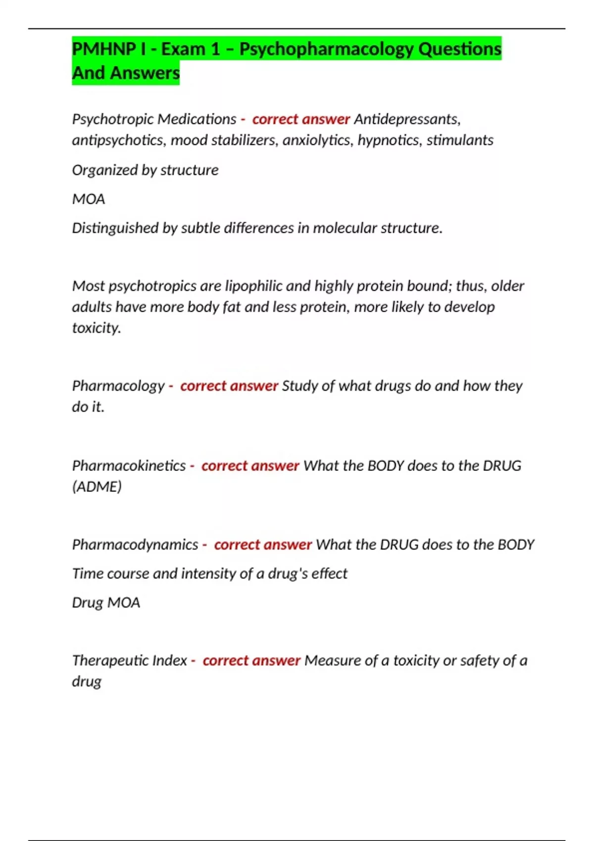 PMHNP I - Exam 1 – Psychopharmacology Questions And Answers