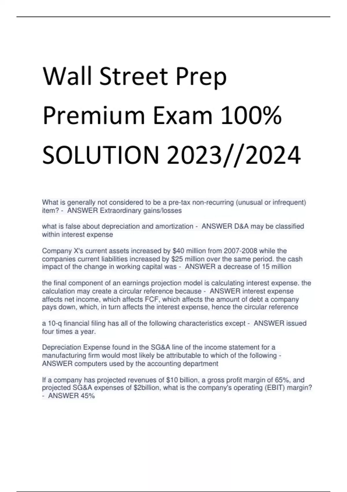 Wall Street Prep Premium Exam 100% SOLUTION 2023//2024