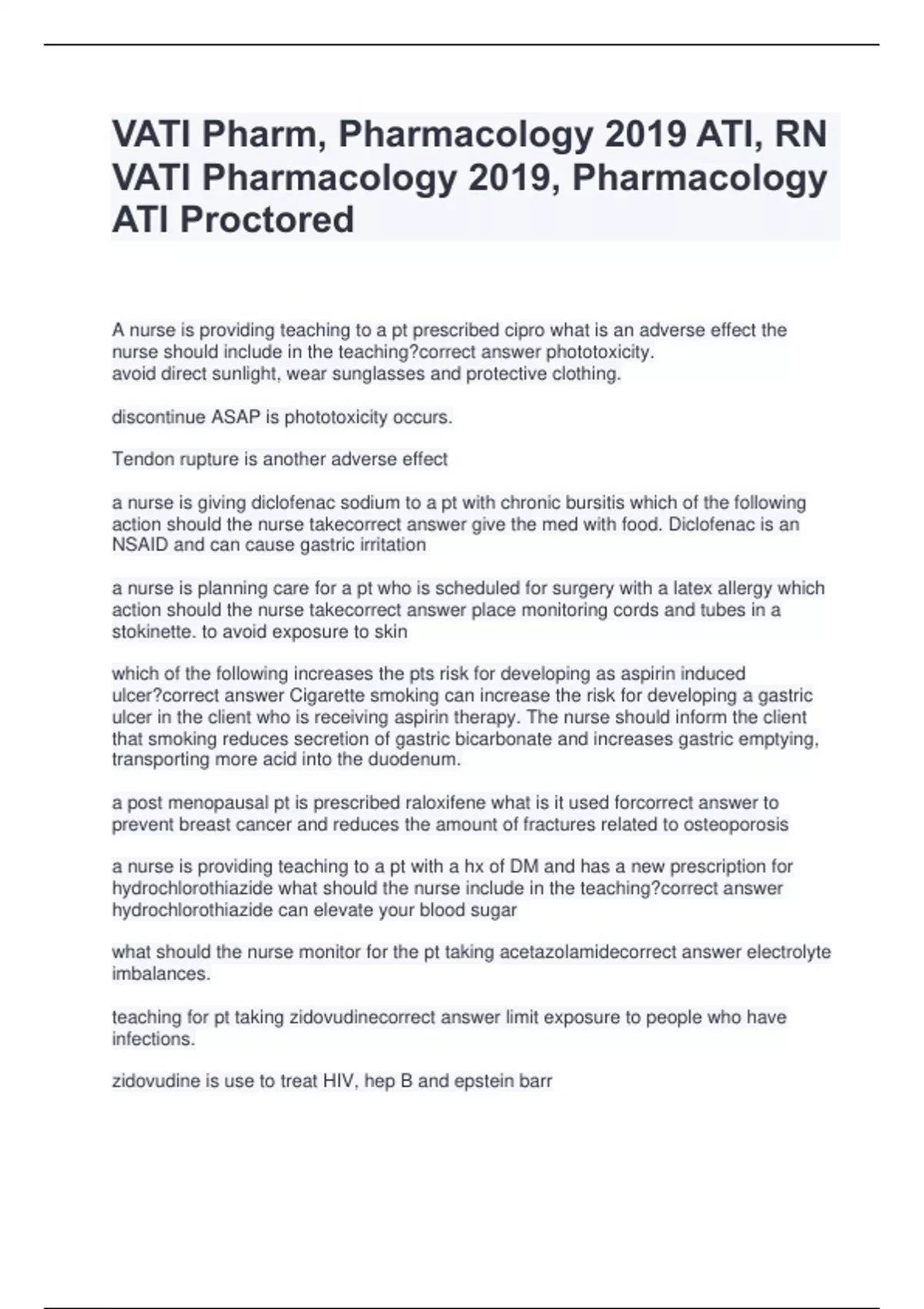 VATI Pharm, Pharmacology 2019 ATI, RN VATI Pharmacology 2019, Pharmacology ATI Proctored