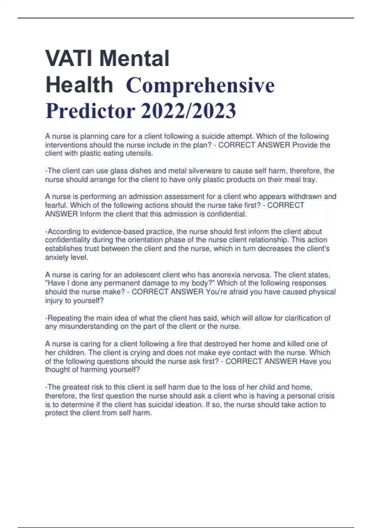 VATI Mental Health Comprehensive Predictor 2022/2023