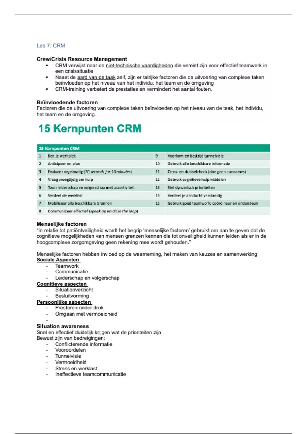 CRM verwijst naar de niet-technische vaardigheden die vereist zijn voor effectief teamwerk in
