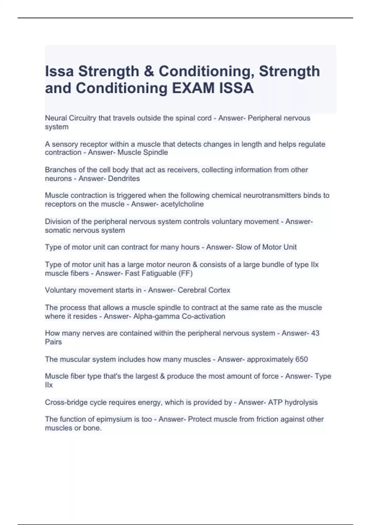 Issa Strength & Conditioning, Strength and Conditioning EXAM ISSA Questions and Answers
