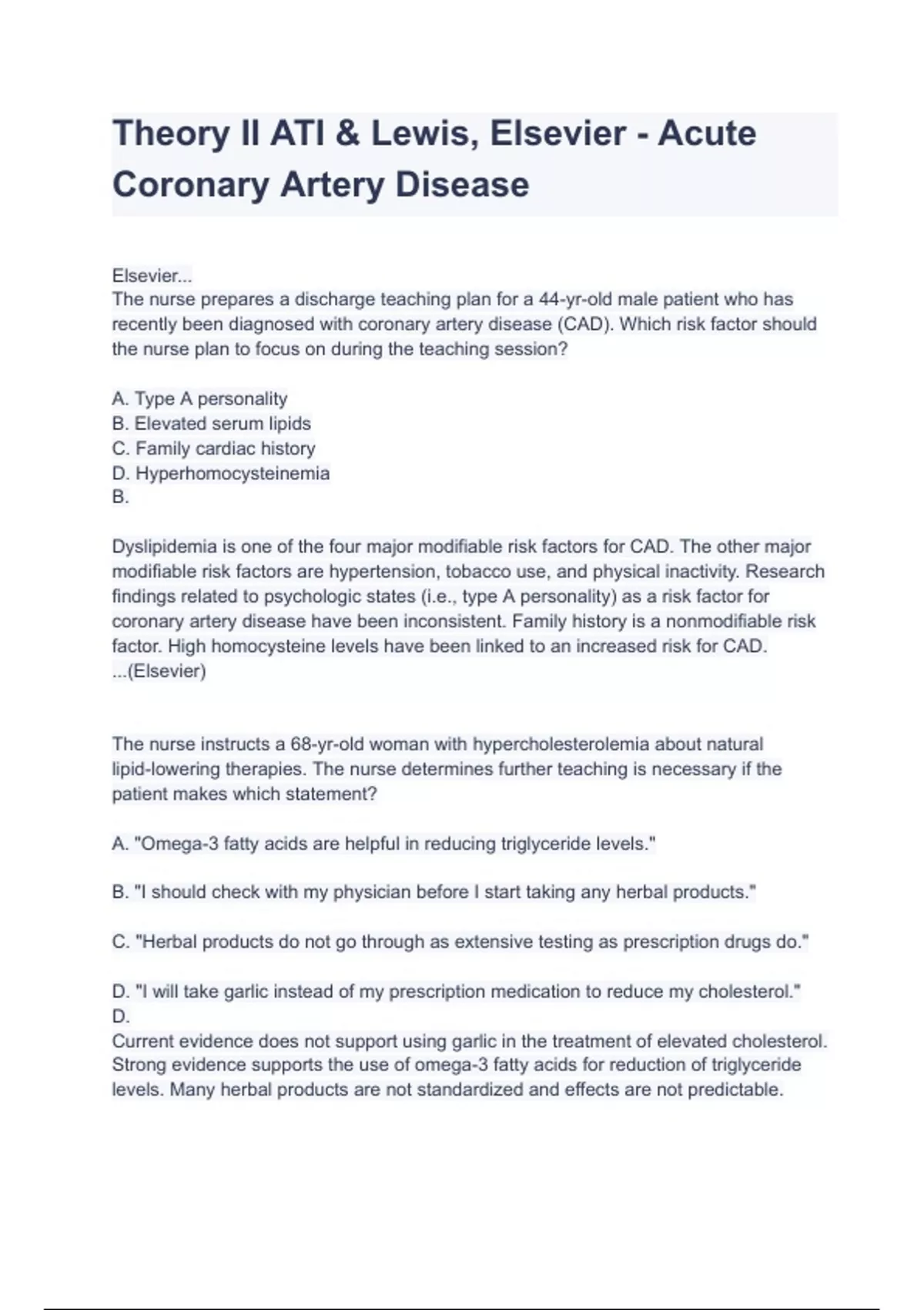 Theory II ATI & Lewis, Elsevier - Acute Coronary Artery Disease