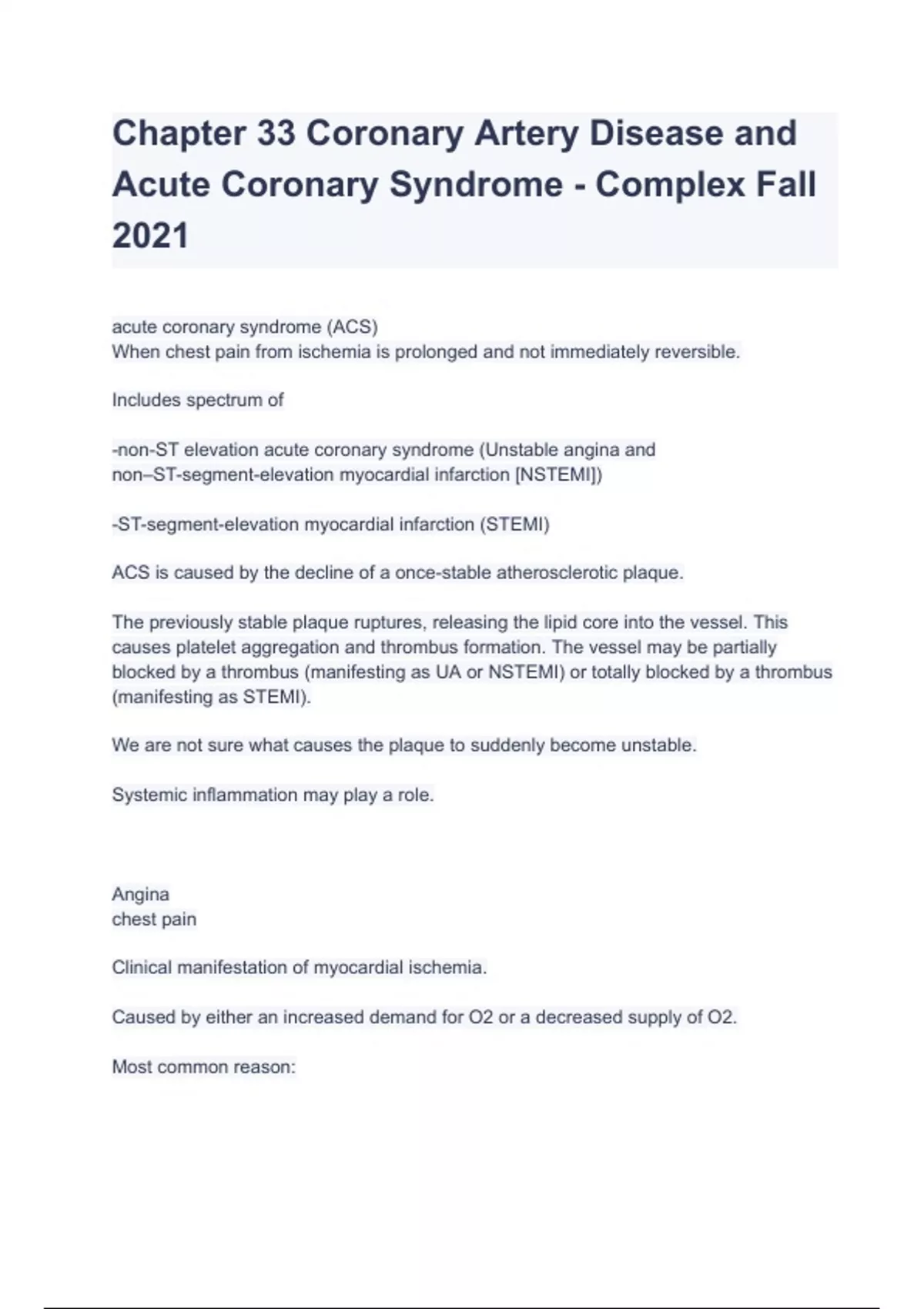 Chapter 33 Coronary Artery Disease and Acute Coronary Syndrome - Complex Fall 2021