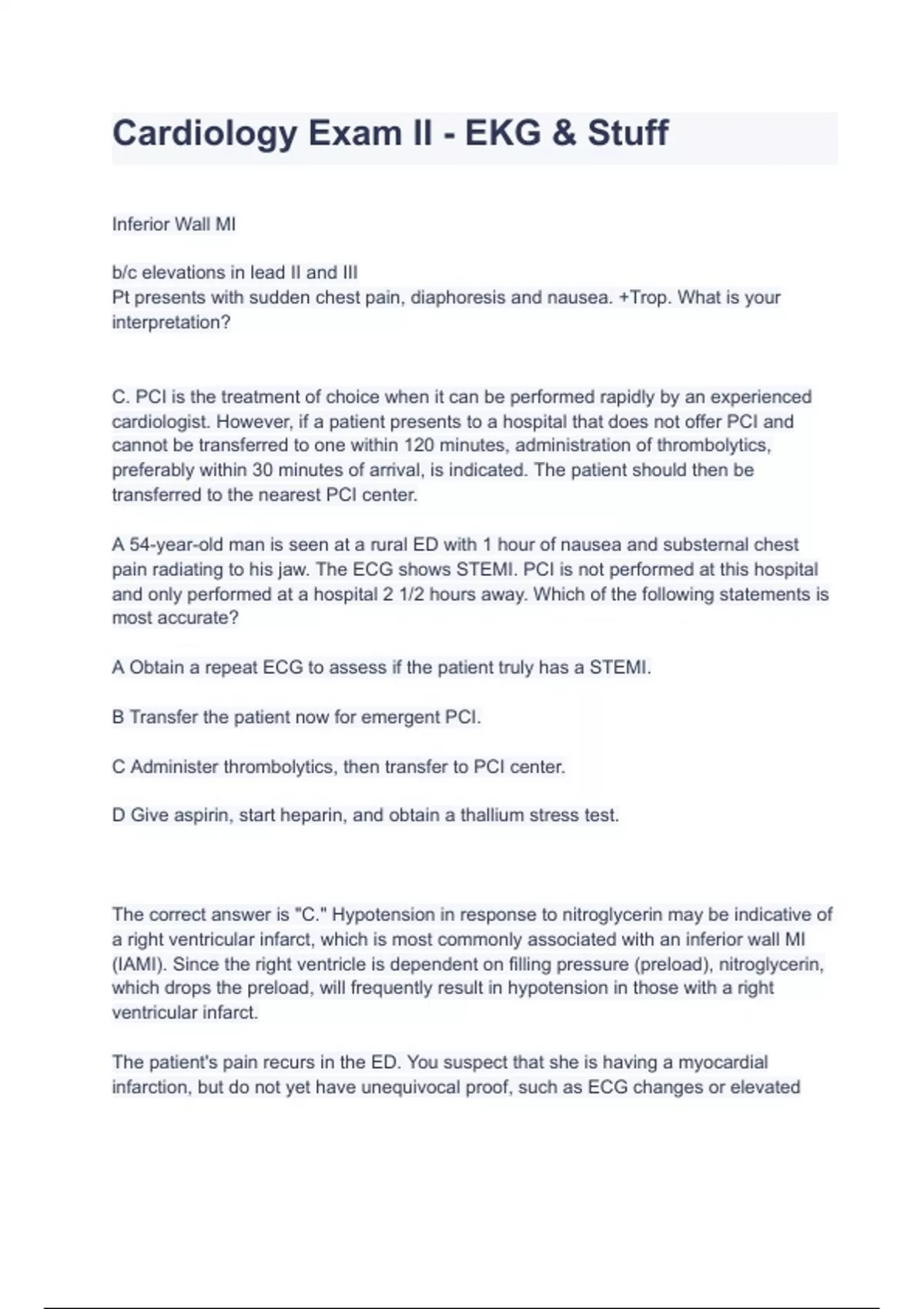 Cardiology Exam II - EKG & Stuff