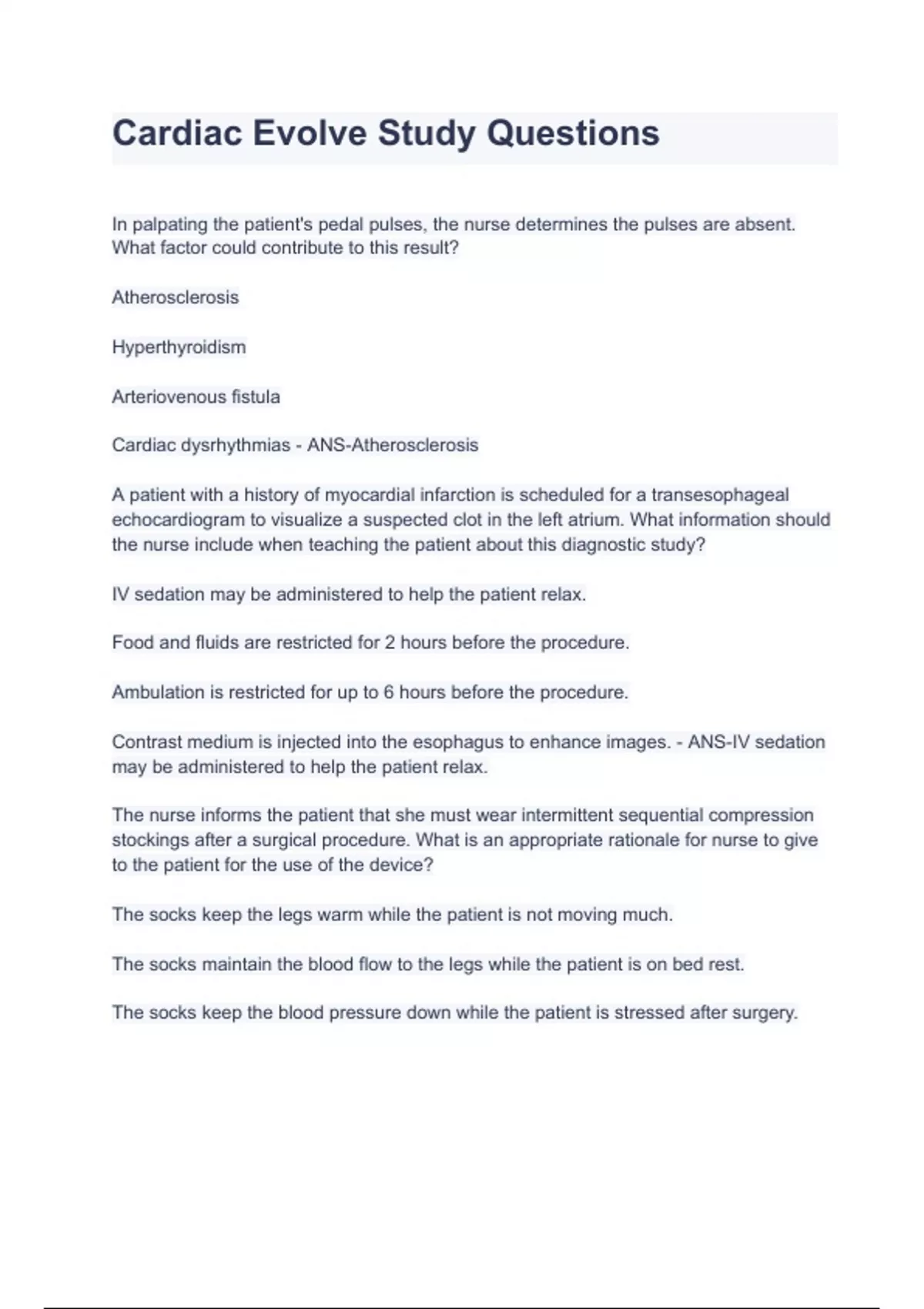 Cardiac Evolve Study Questions