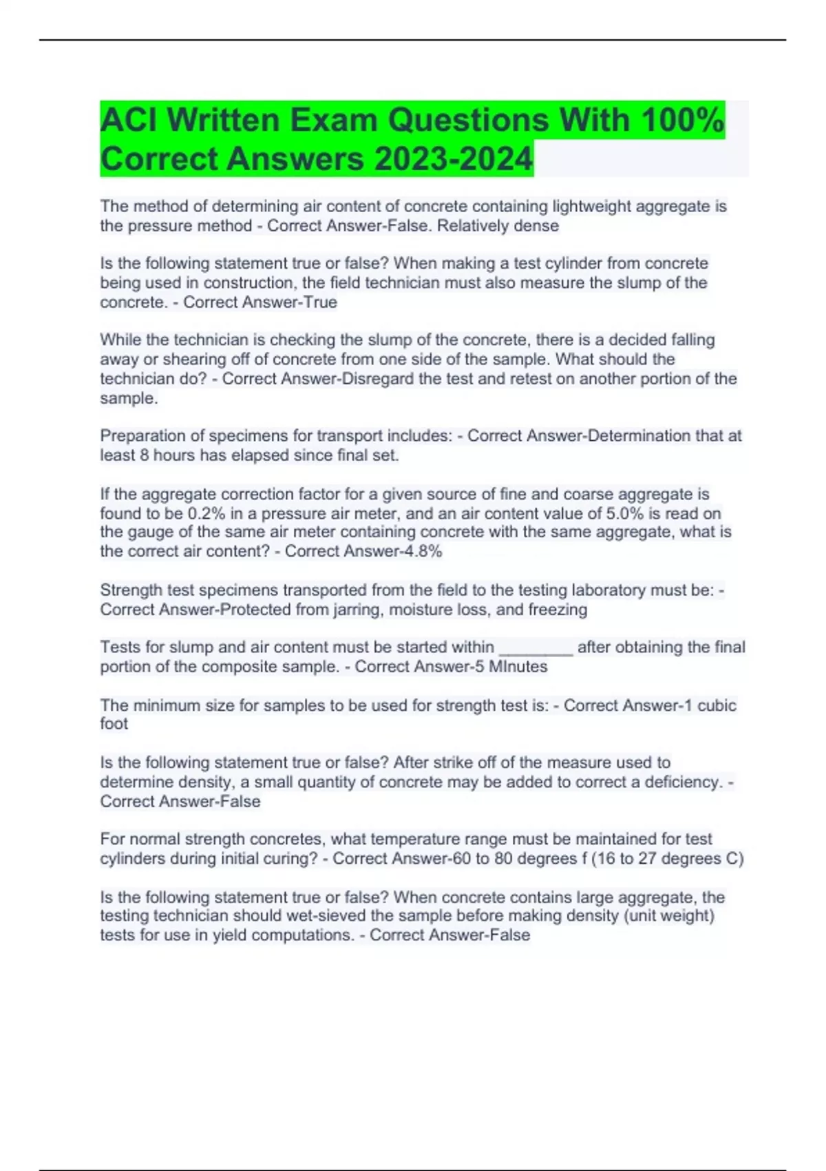 ACI Written Exam Questions With 100% Correct Answers