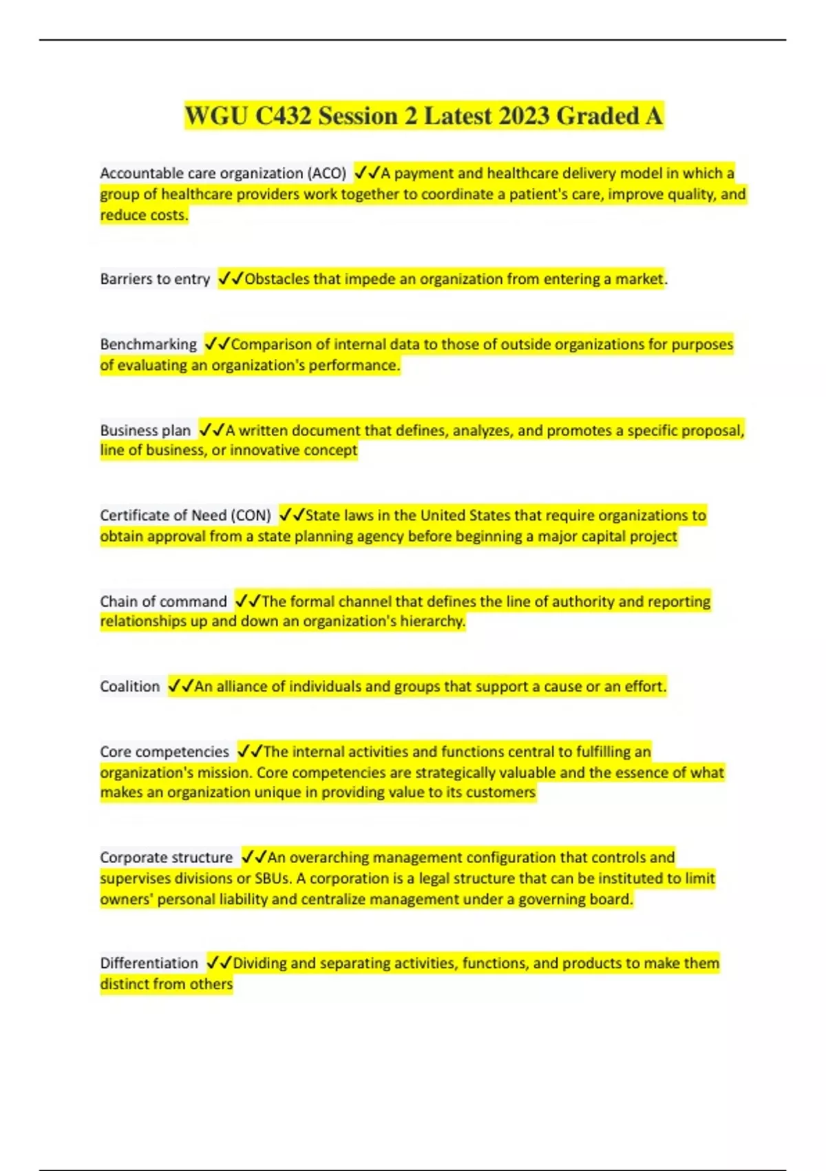 WGU C432 Session 2 Questions with Correct Answers Latest Update 2023 Graded A