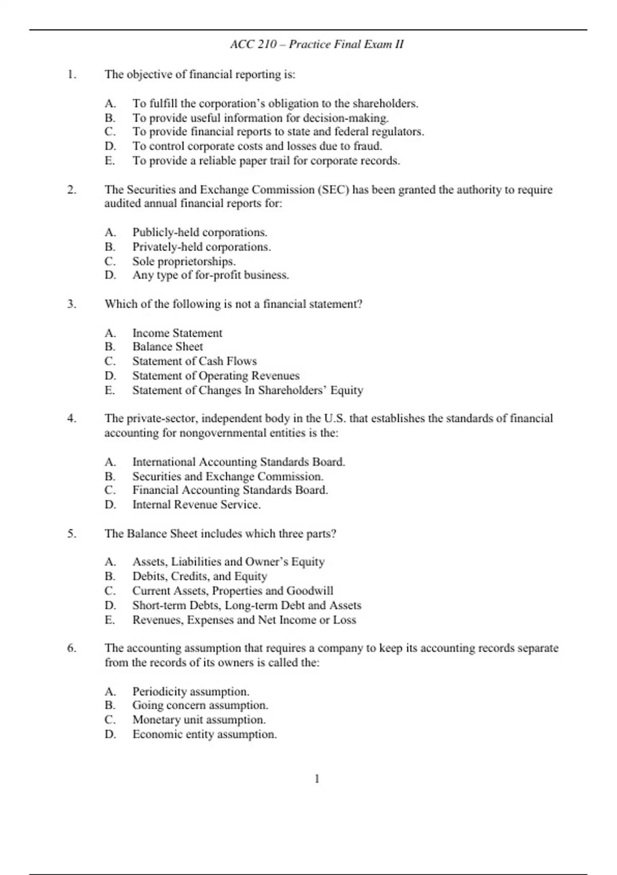 ACC 210 – Practice Final Exam Questions and Answers 2024