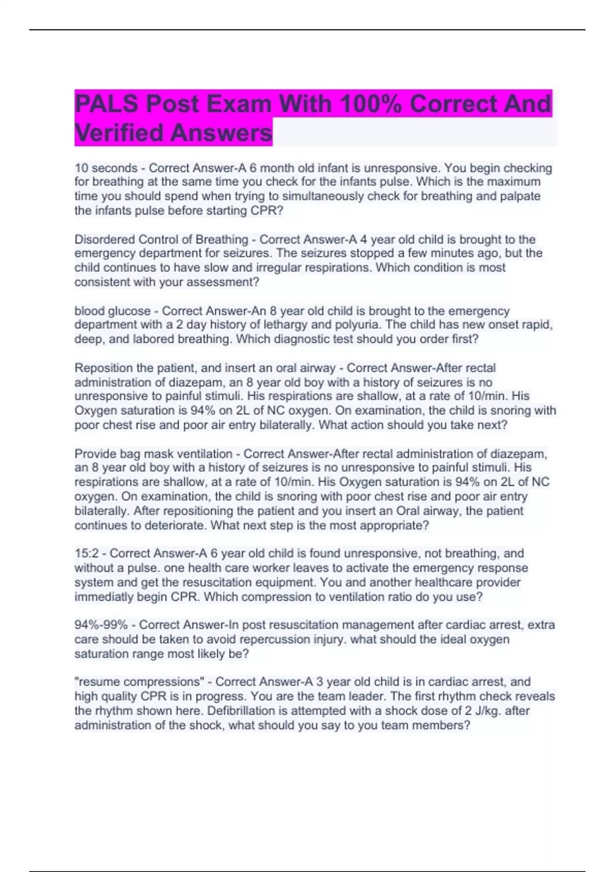PALS Post Exam With 100% Correct And Verified Answers