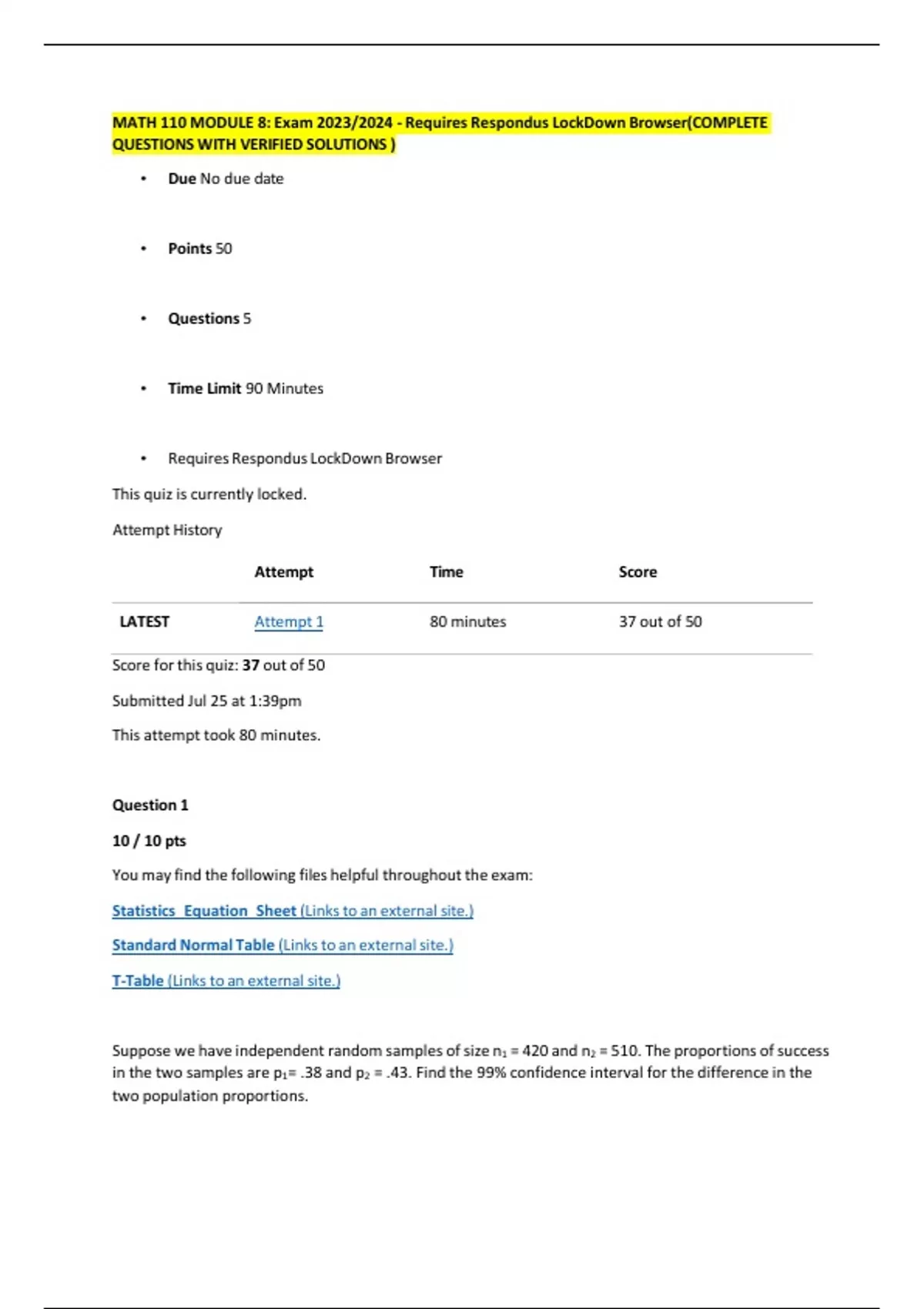 MATH 110 MODULE 8: Exam 2023/2024 - Requires Respondus LockDown Browser(COMPLETE QUESTIONS WITH VERIFIED SOLUTIONS )