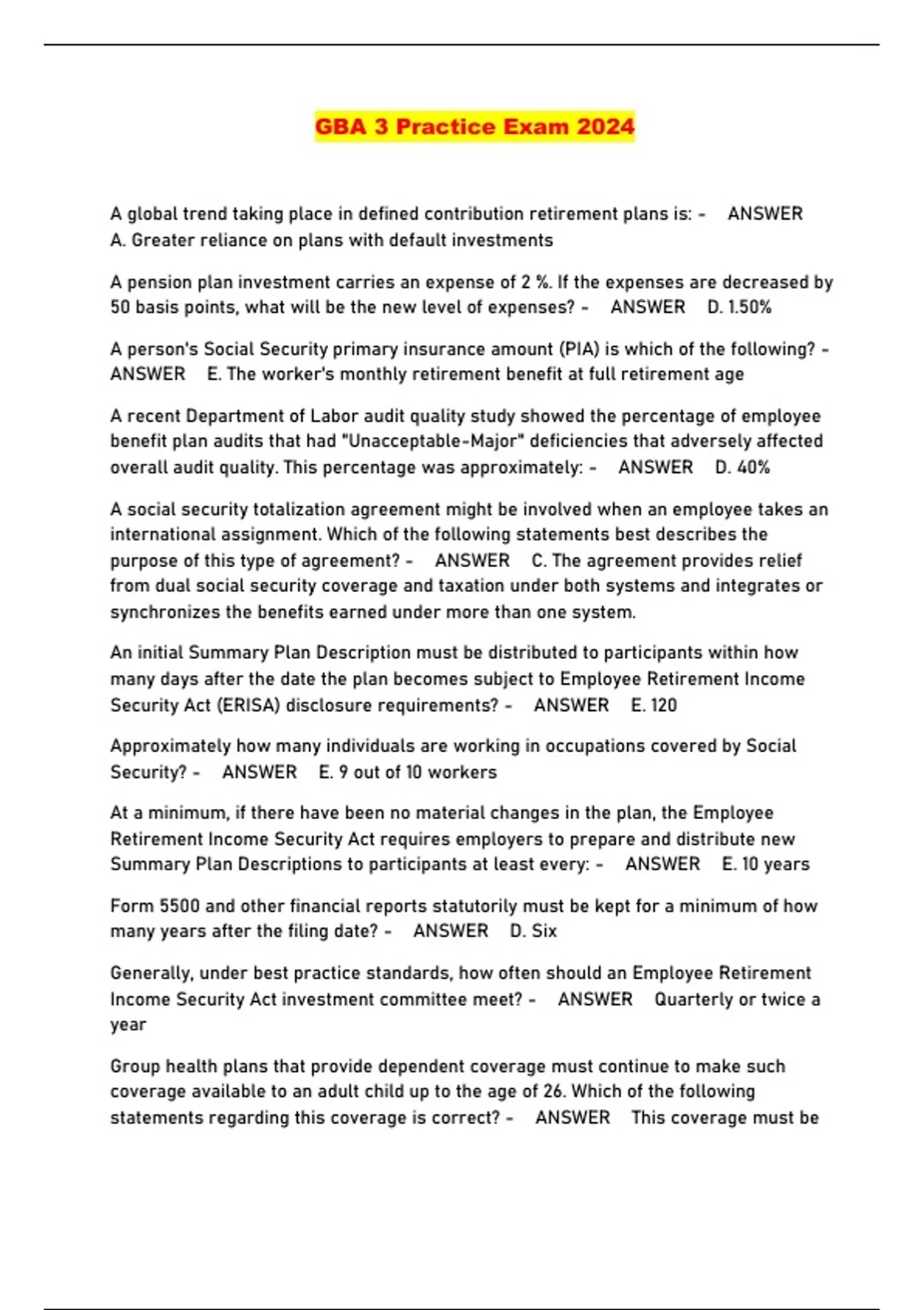GBA AND CEBS GBA PACKAGED EXAMS LATEST UPDATE