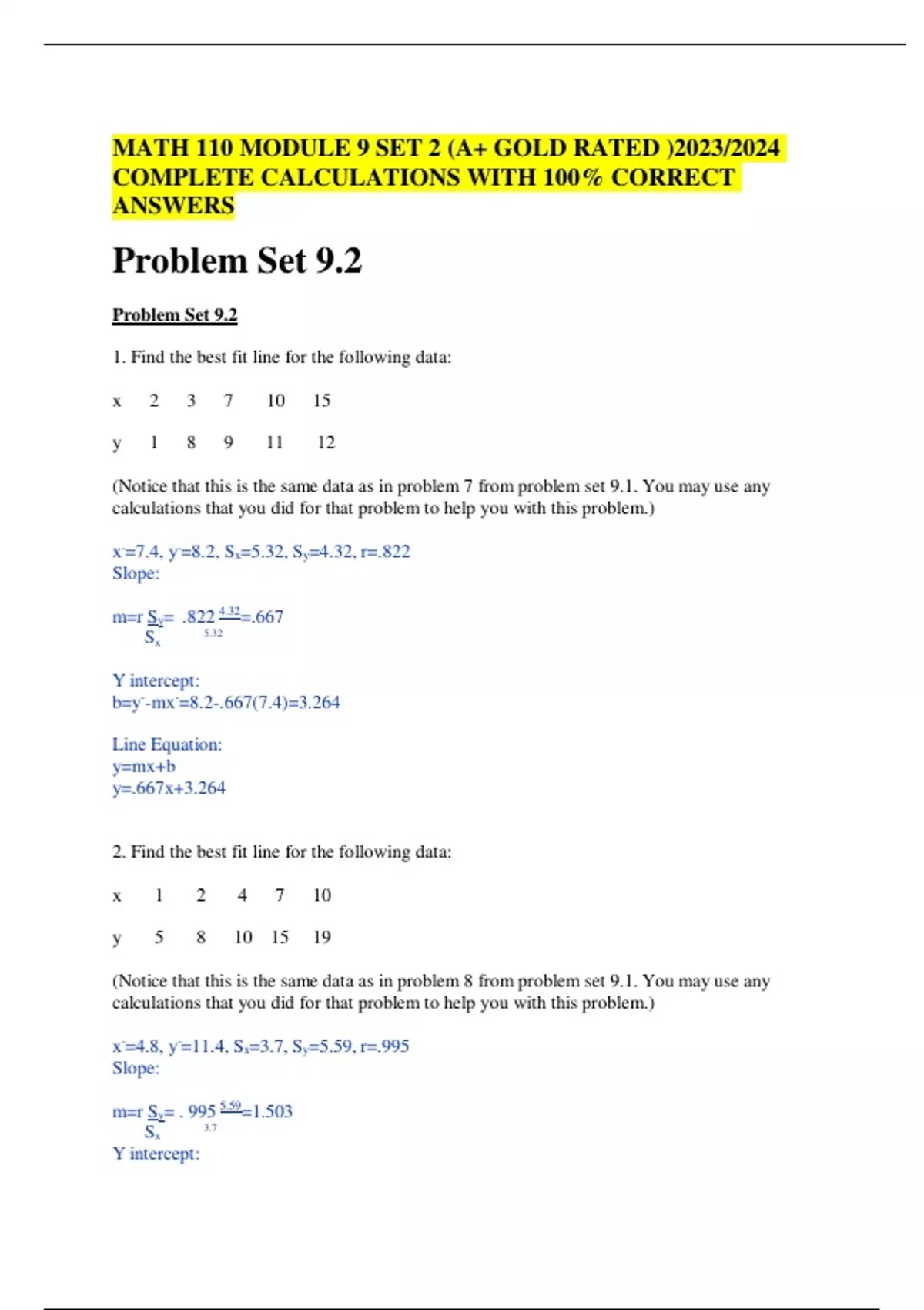 MATH 110 MODULE 9 SET 2 (A+ GOLD RATED )2023/2024 COMPLETE CALCULATIONS WITH 100% CORRECT ANSWERS