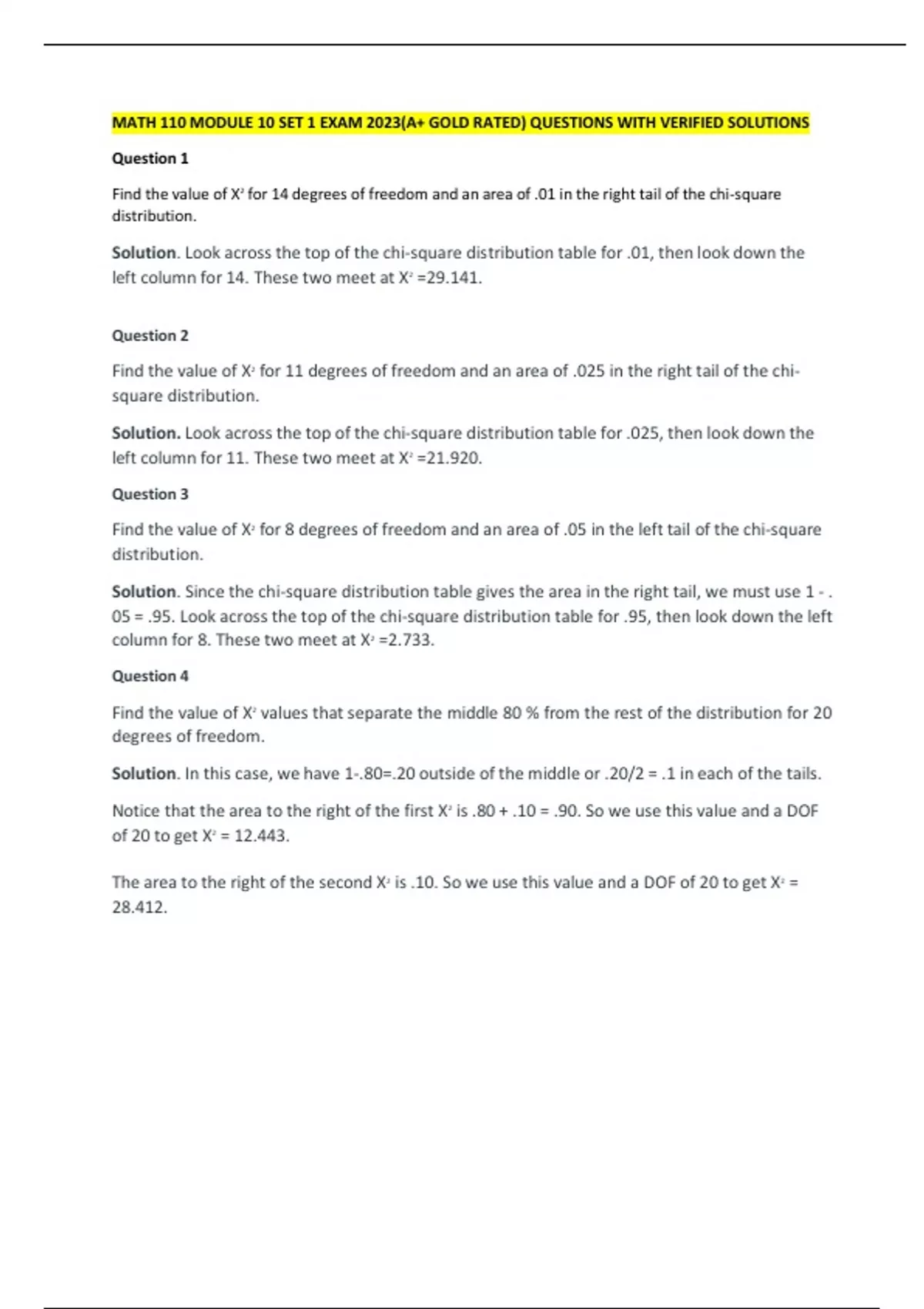MATH 110 MODULE 10 SET 1 EXAM 2023(A+ GOLD RATED) QUESTIONS WITH VERIFIED SOLUTIONS
