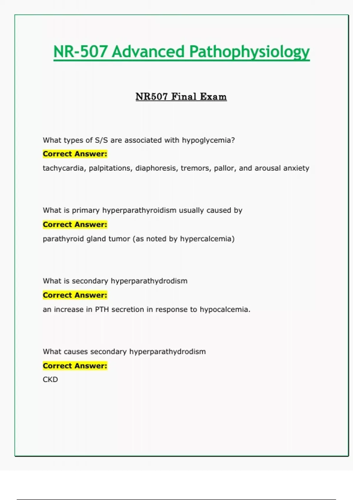 NR507 / NR 507 Final Exam (Latest 2024 / 2025): Advanced Pathophysiology - Chamberlain