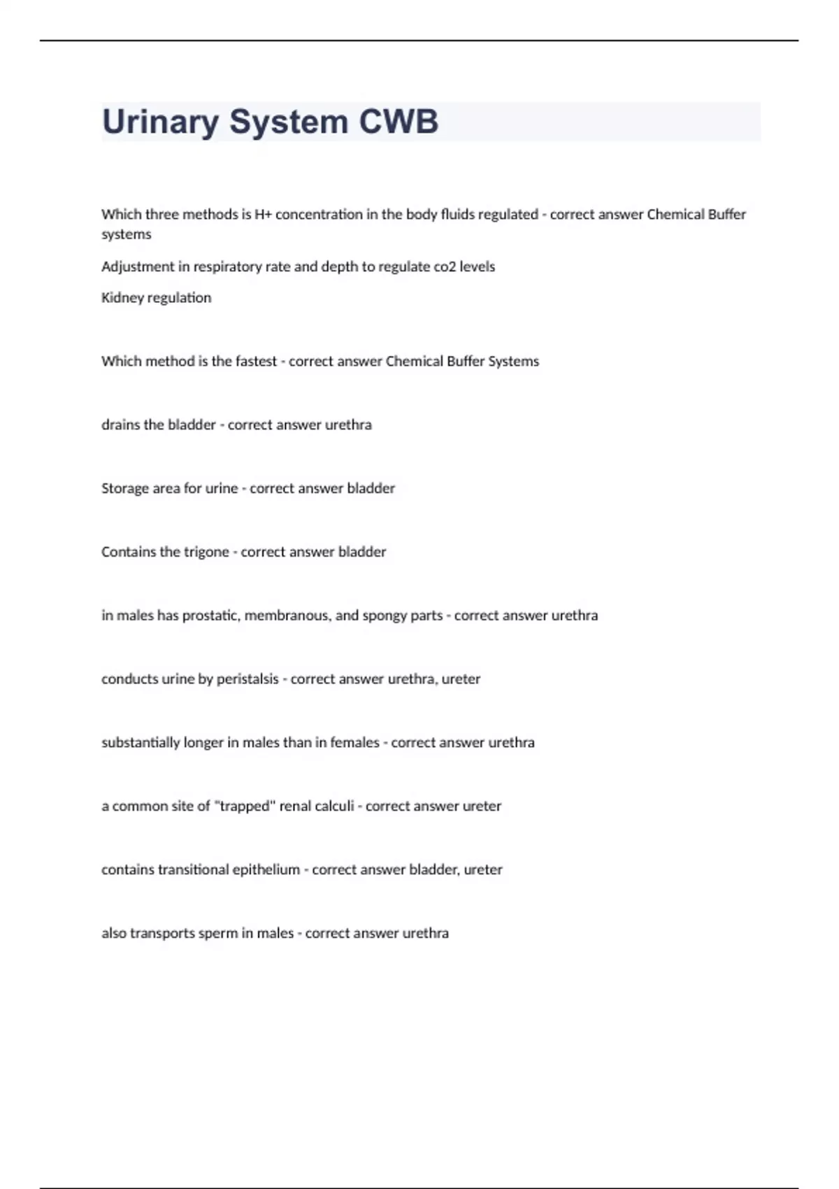 Urinary System CWB questions & answers rated A+ 2023/2024