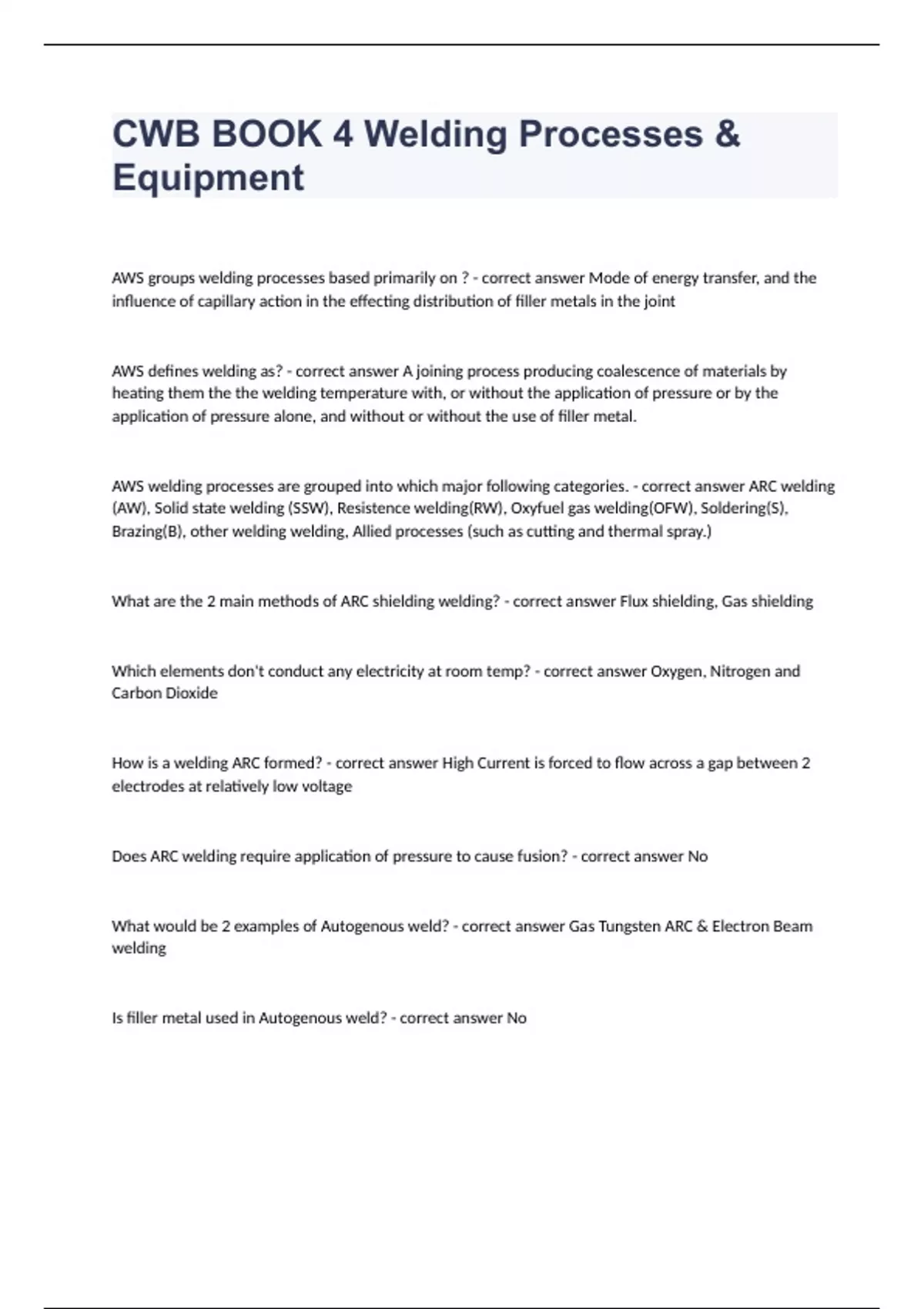 CWB BOOK 4 Welding Processes & Equipment 2023/2024 latest update