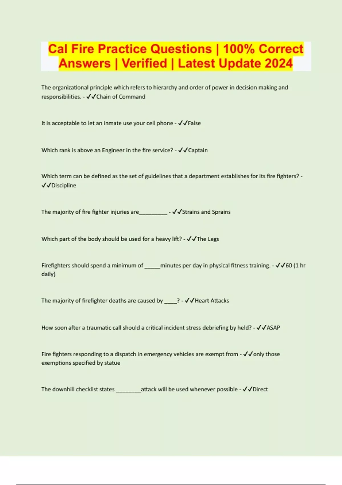 Cal Fire Practice Questions | 100% Correct Answers | Verified | Latest Update 2024