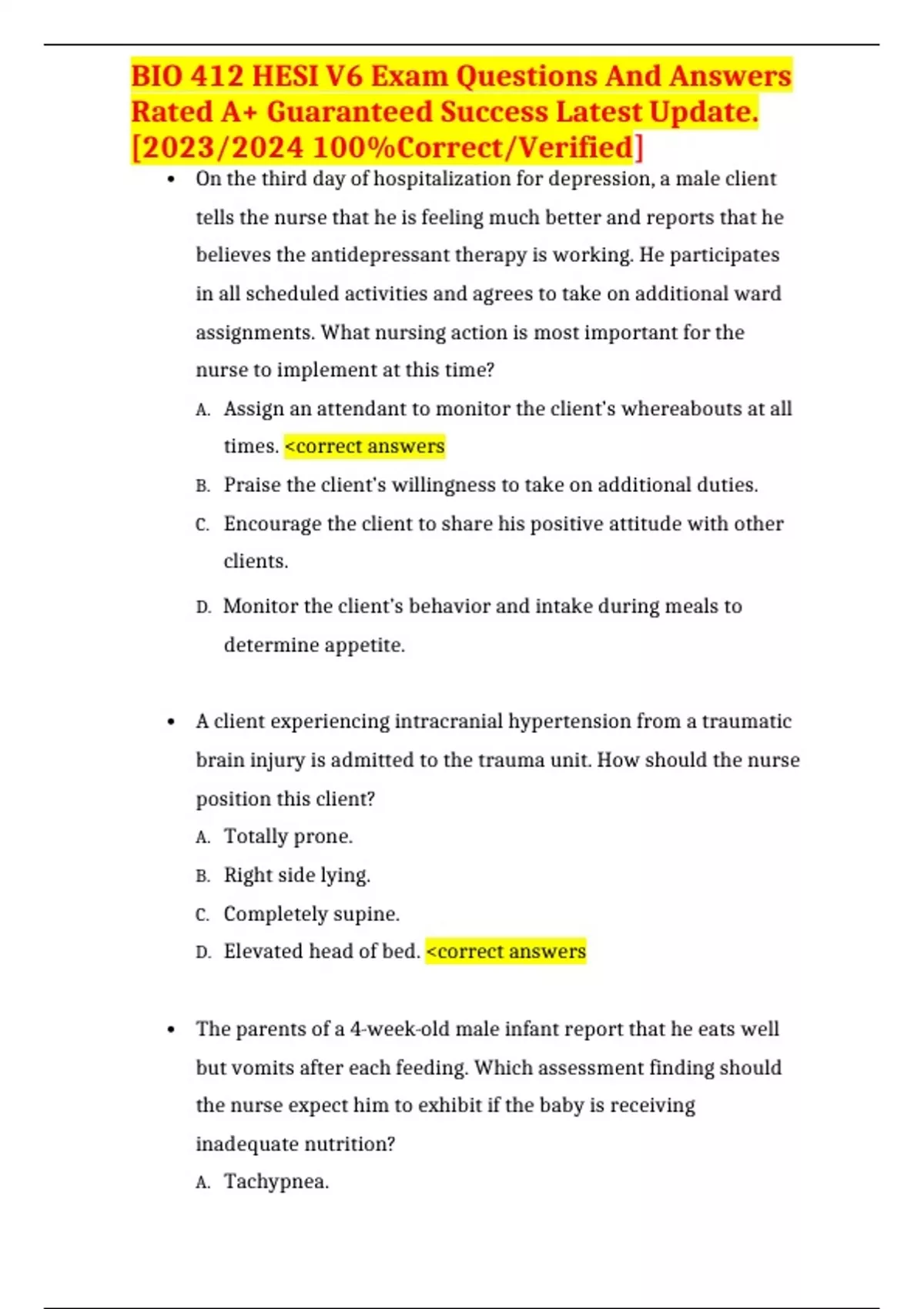 BIO 412 HESI V6 Exam Questions And Answers Rated A+ Guaranteed Success Latest Update. [2023/2024 100%Correct/Verified]