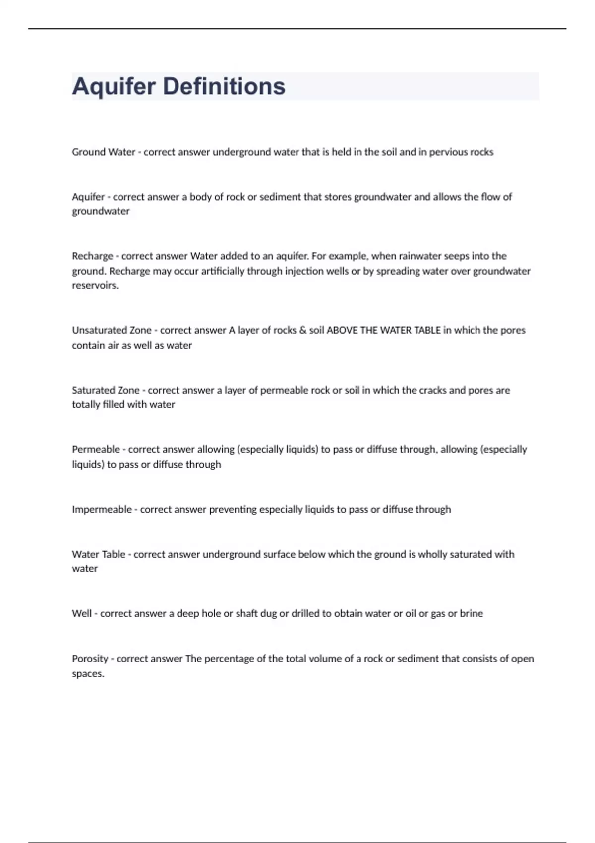 Aquifer Definitions Question and answers correctly solved 2023/2024