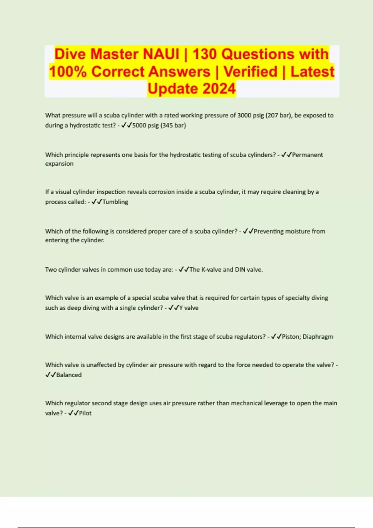 Dive Master NAUI | 130 Questions with 100% Correct Answers | Verified | Latest Update 2024