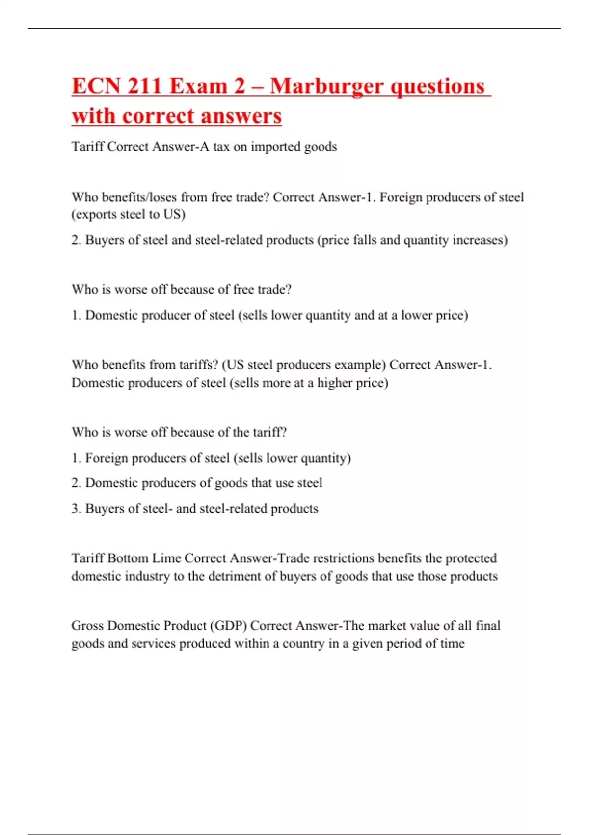 ECN 211 Exam 2 – Marburger questions with correct answers