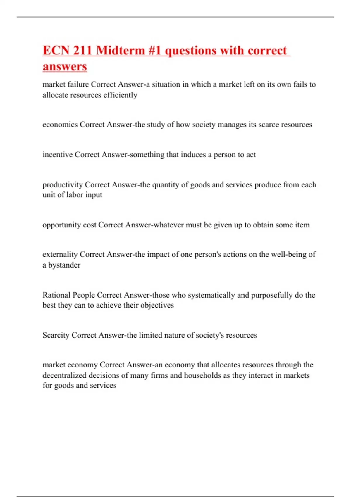 ECN 211 Midterm #1 questions with correct answers