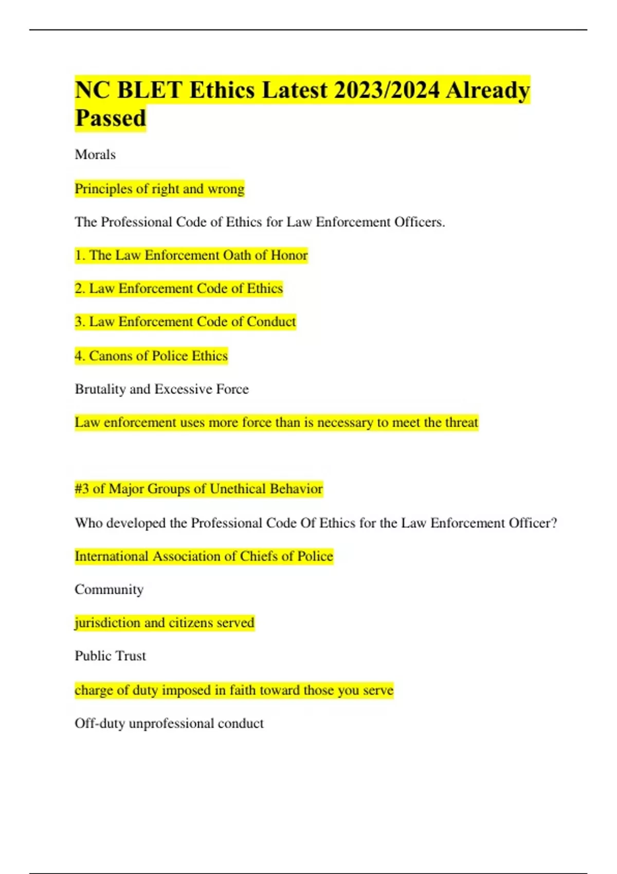 NC BLET Ethics Latest 2023/2024 Already Passed