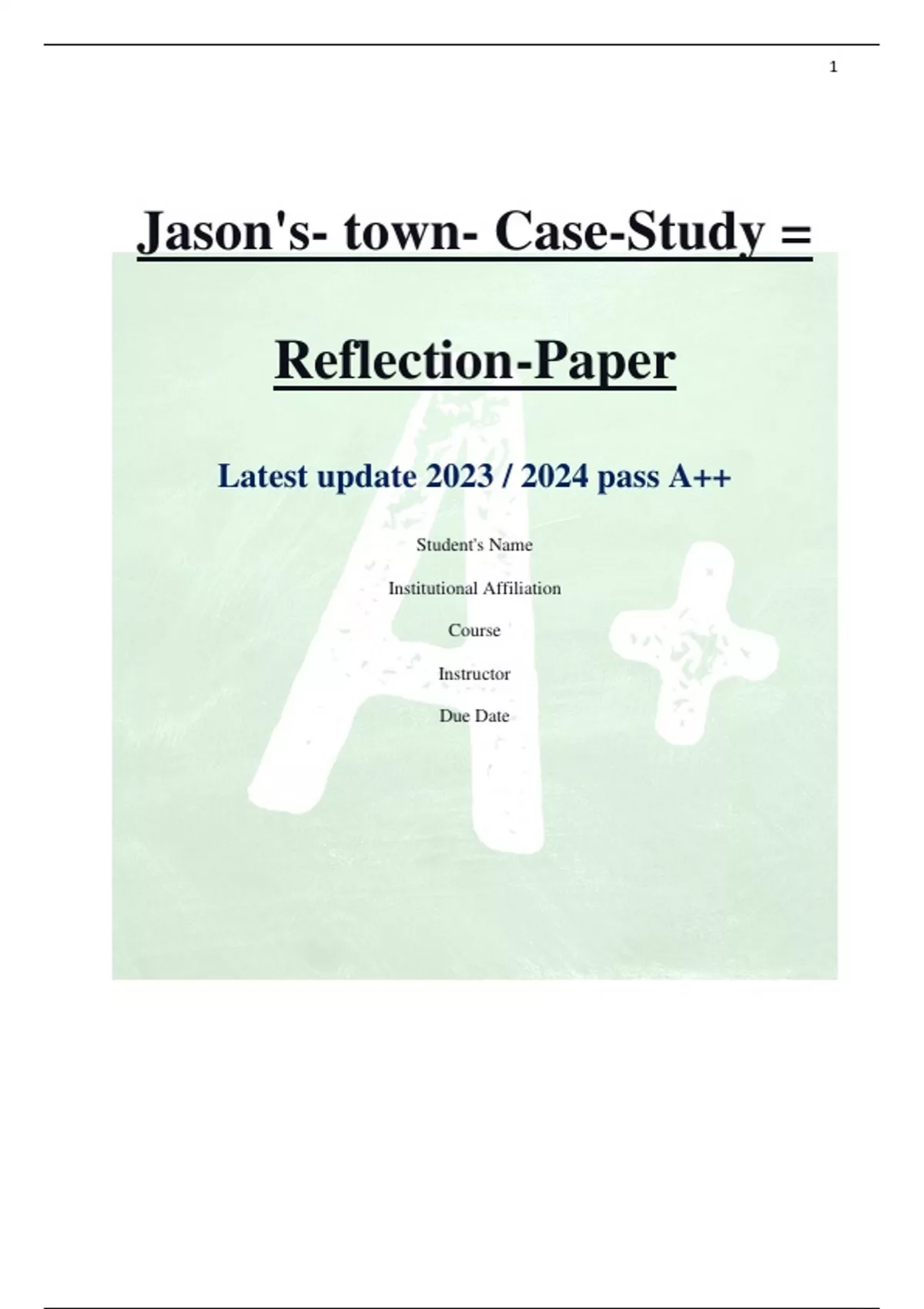 - Jason\'s- town- Case-Study = Reflection-Paper