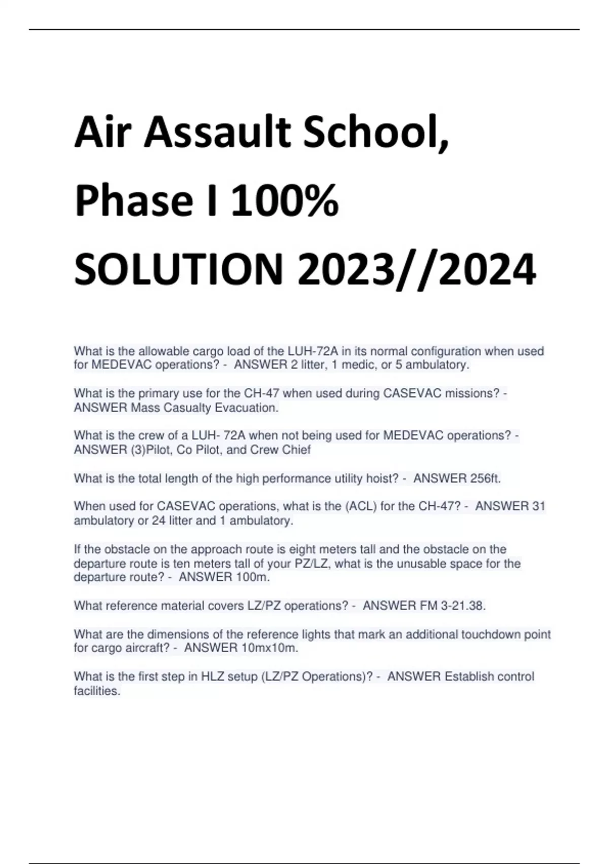 Air Assault School, Phase I 100% SOLUTION 2023//2024