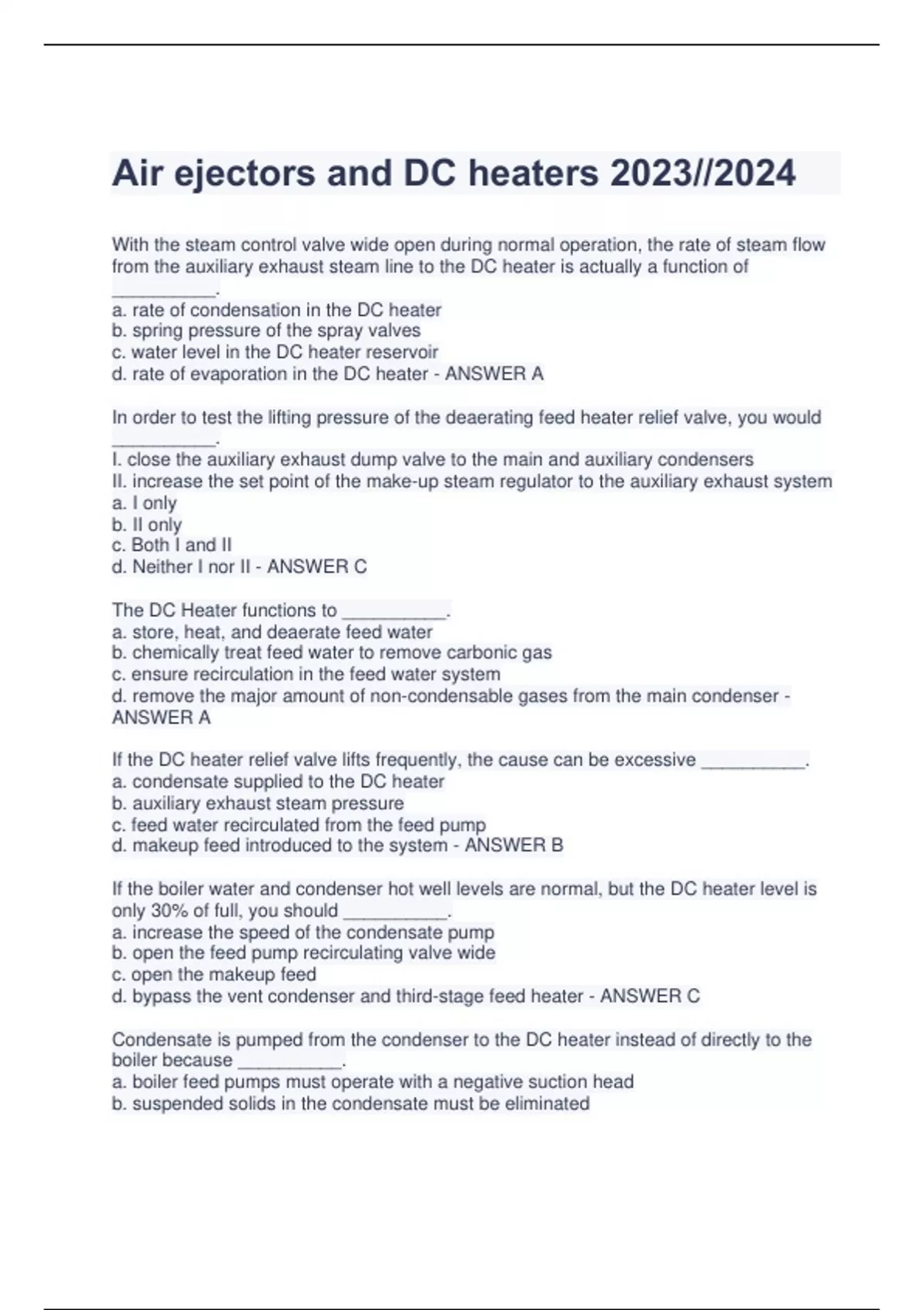 Air ejectors and DC heaters 2023//2024 100% ANSWER