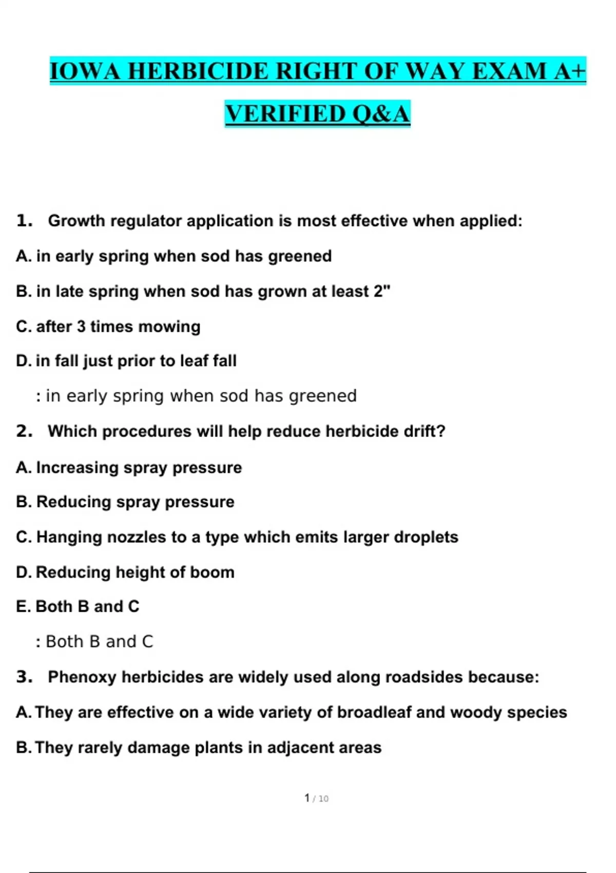 IOWA HERBICIDE RIGHT OF WAY EXAM A+ VERIFIED QUESTIONS AND ANSWERS