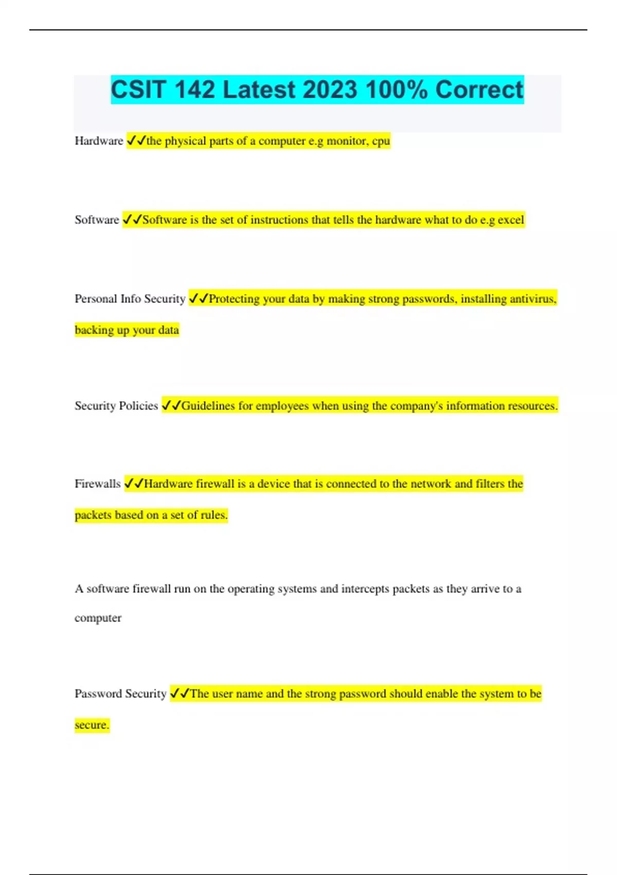 csit 142 latest 2023 100 correct