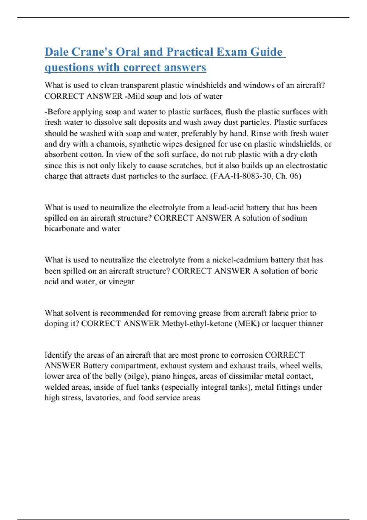 Dale Crane's Oral and Practical Exam Guide questions with correct answers