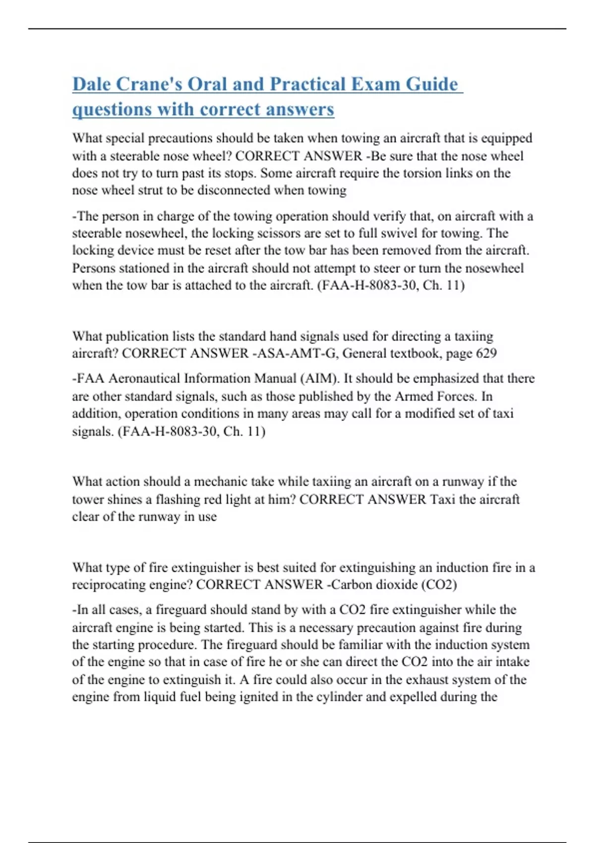 Dale Crane's Oral and Practical Exam Guide questions with correct answers