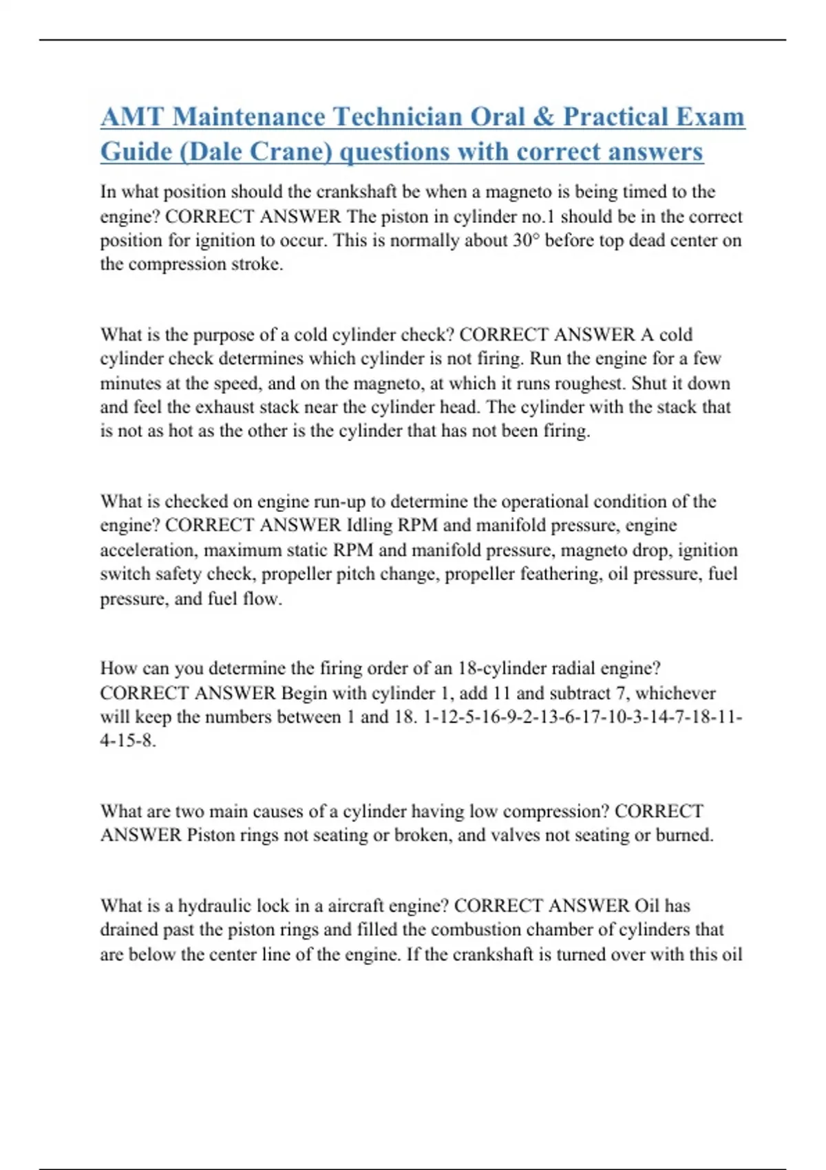 AMT Maintenance Technician Oral & Practical Exam Guide (Dale Crane) questions with correct answers