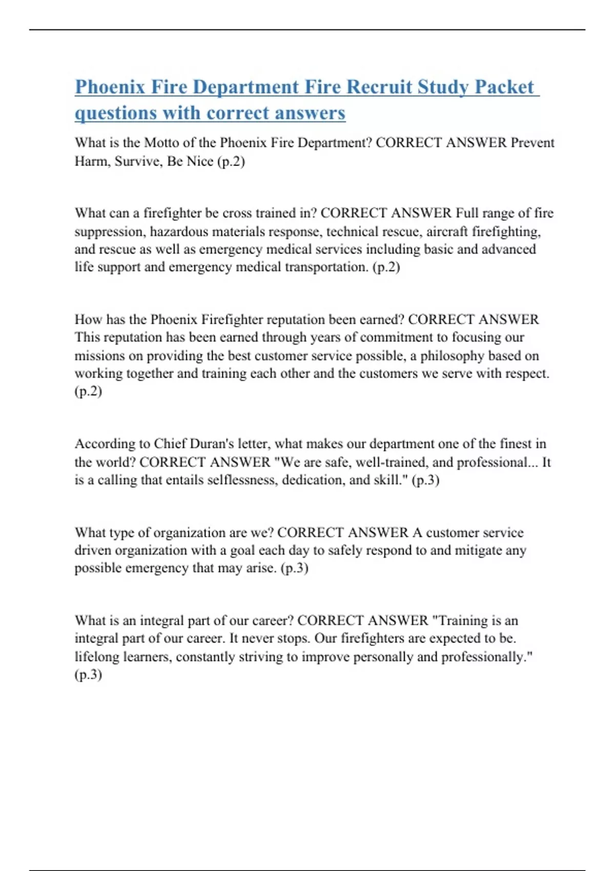 Phoenix Fire Department Fire Recruit Study Packet questions with correct answers