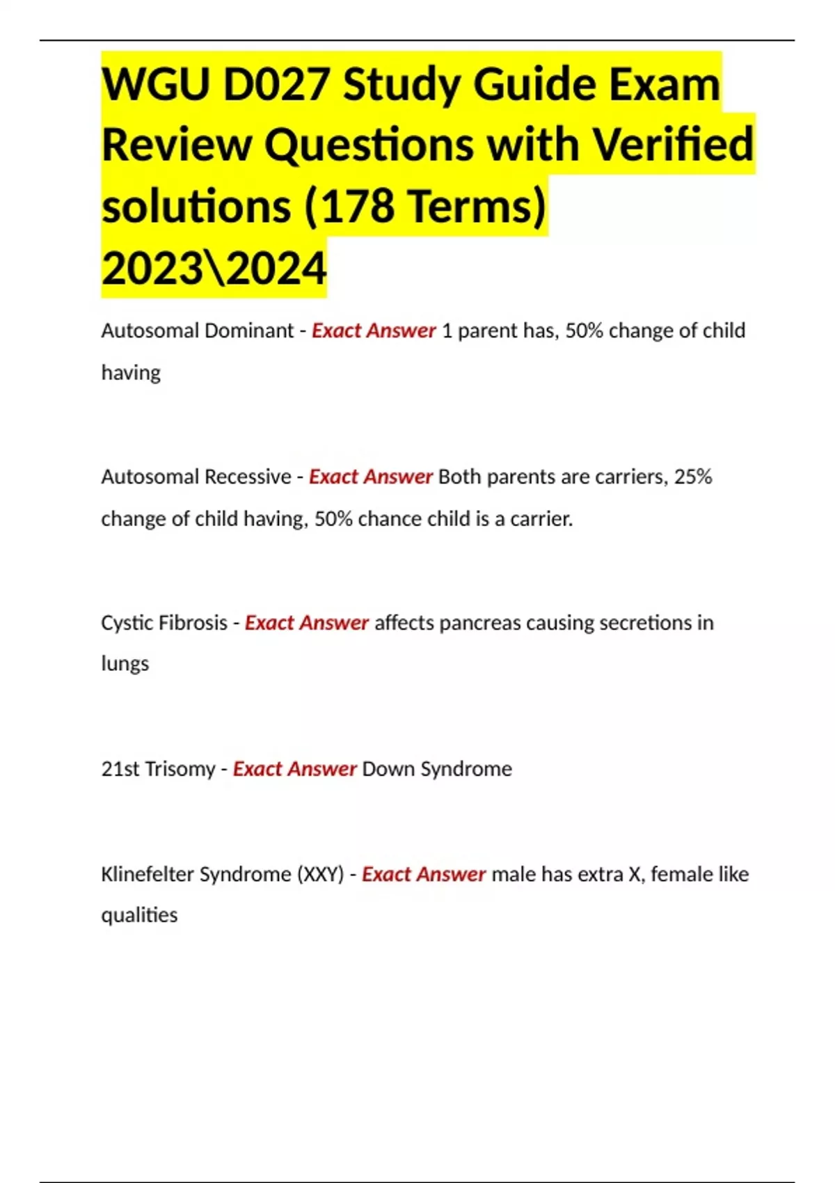 WGU D027 Study Guide Exam Review Questions with Verified solutions (178 Terms)