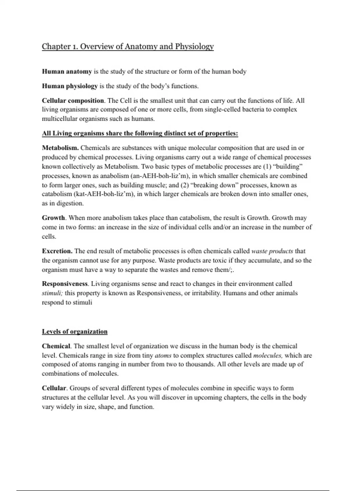 This document contains in depth notes of Unit 1 covered in the Anatomy and Physiology class at NOVA.
