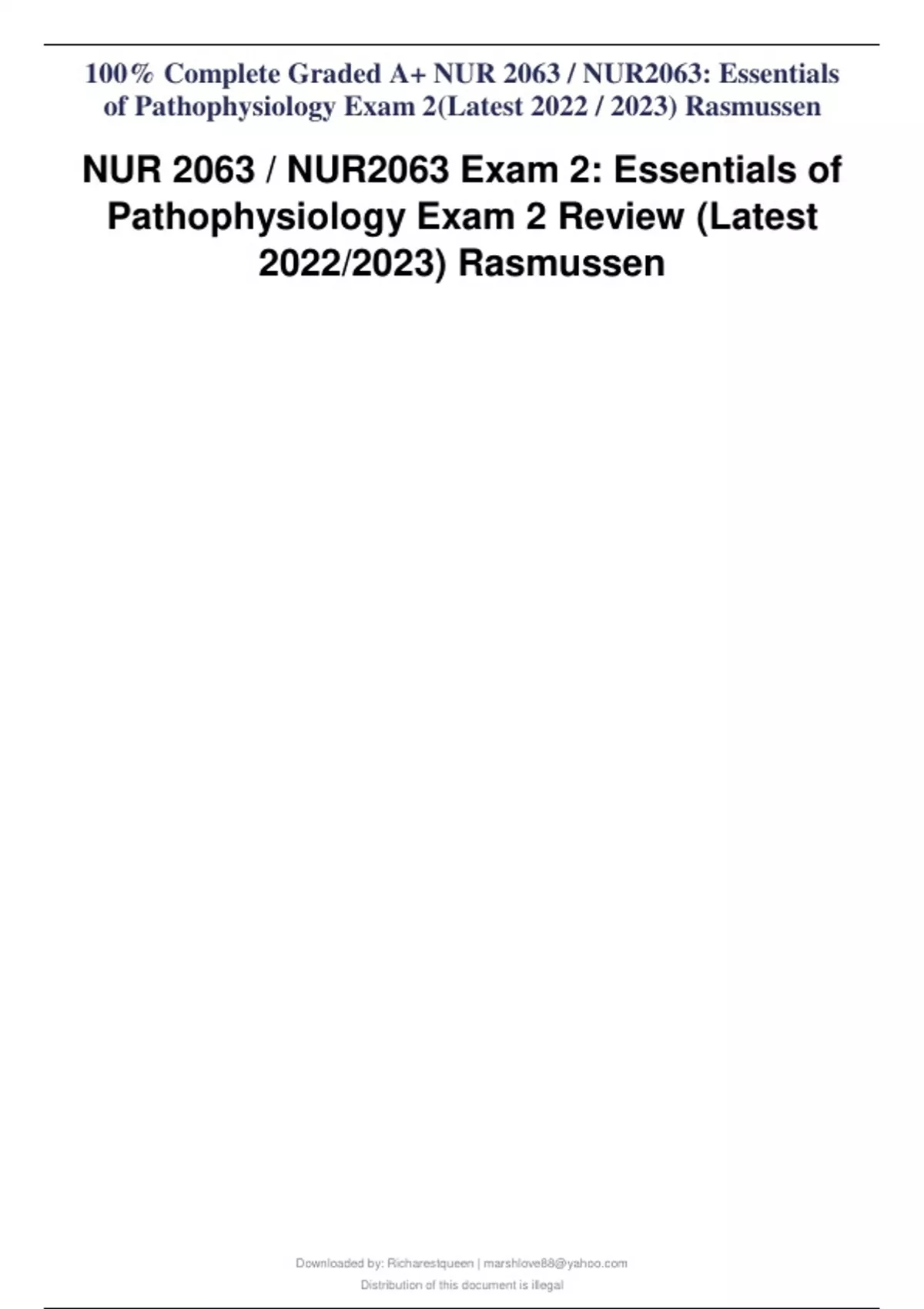 NUR2063 Exam 2 Essentials of Pathophysiology Exam 2 Review 2023/2024