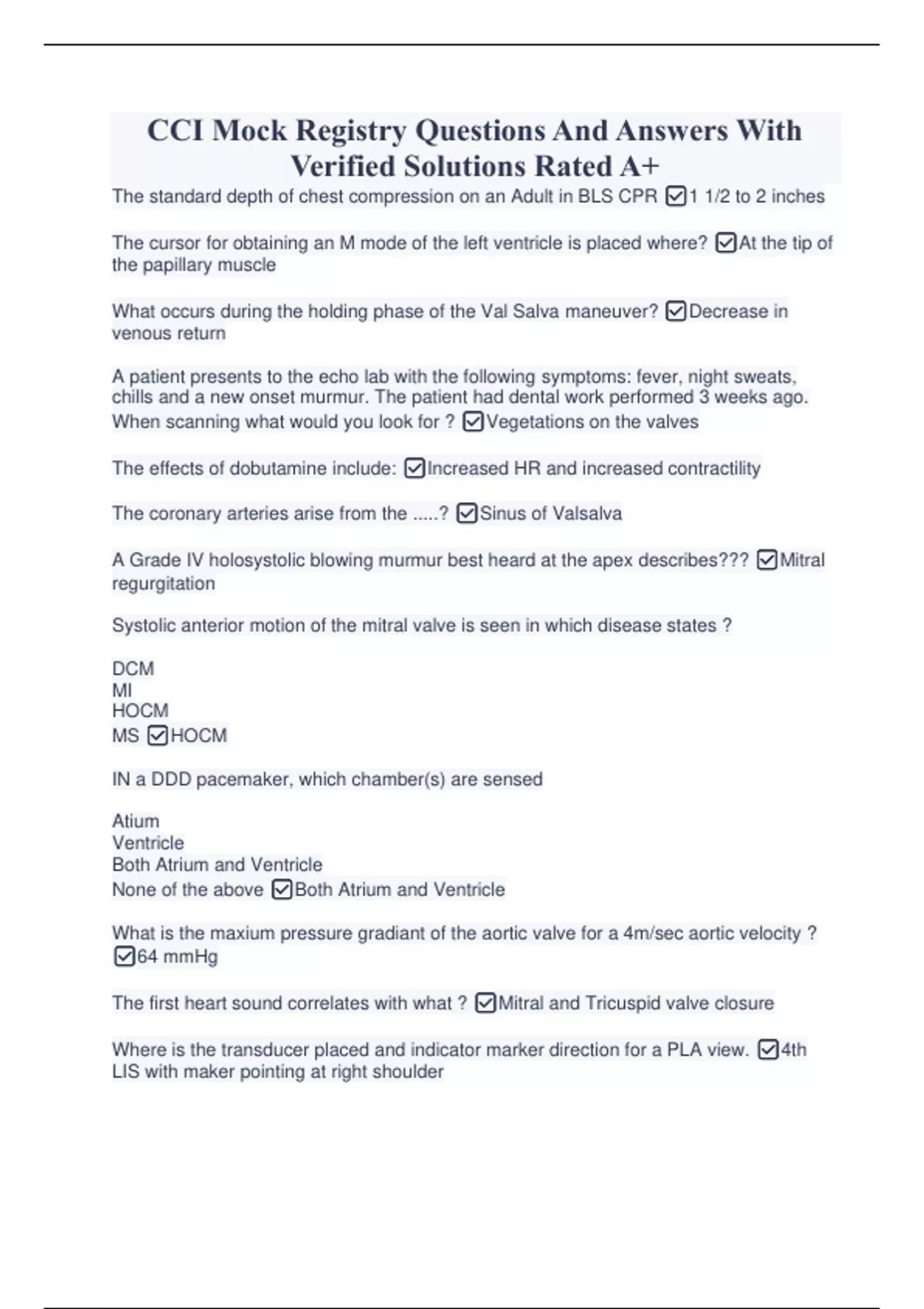 CCI Mock Registry Questions And Answers With Verified Solutions Rated A+ CCI Mock Registry Questions And Answers With Verified Solutions Rated A+