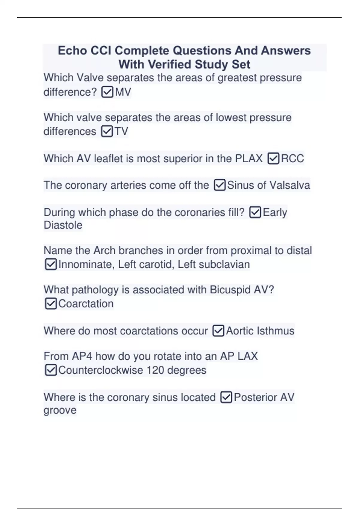 Echo CCI Complete Questions And Answers With Verified Study Set Echo CCI Complete Questions And Answers With Verified Study Set