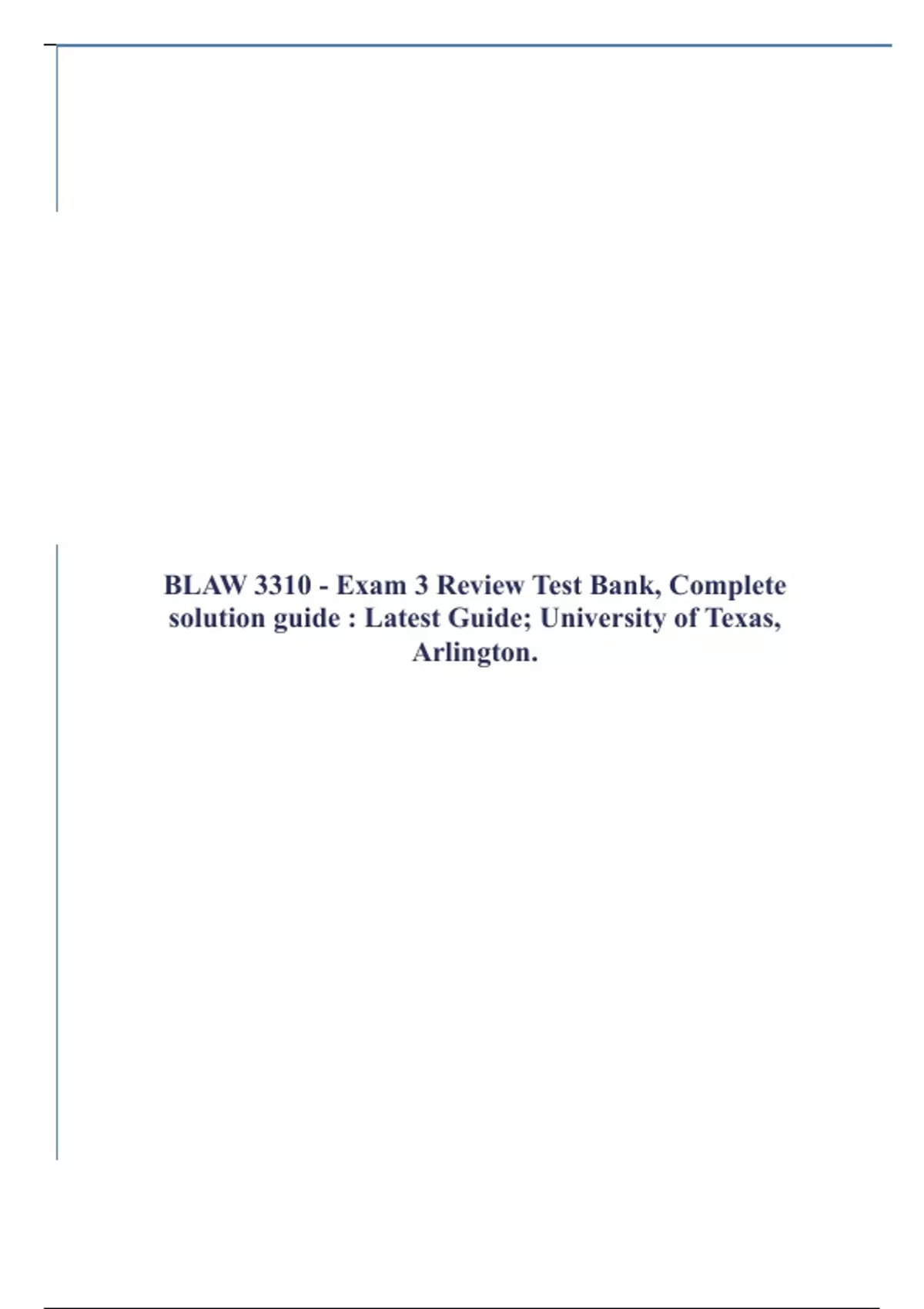 BLAW 3310 - Exam 3 Review Test Bank, Complete solution guide : Latest Guide; University of Texas, Arlington.